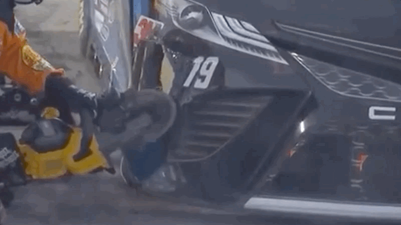 Update: Jalopnik contributor Bozi Tatarevic further clarified that the No. 19 car's former crew chief Cole Pearn also tweeted his belief that the electric saw is legal, despite the previous gas saw ban: