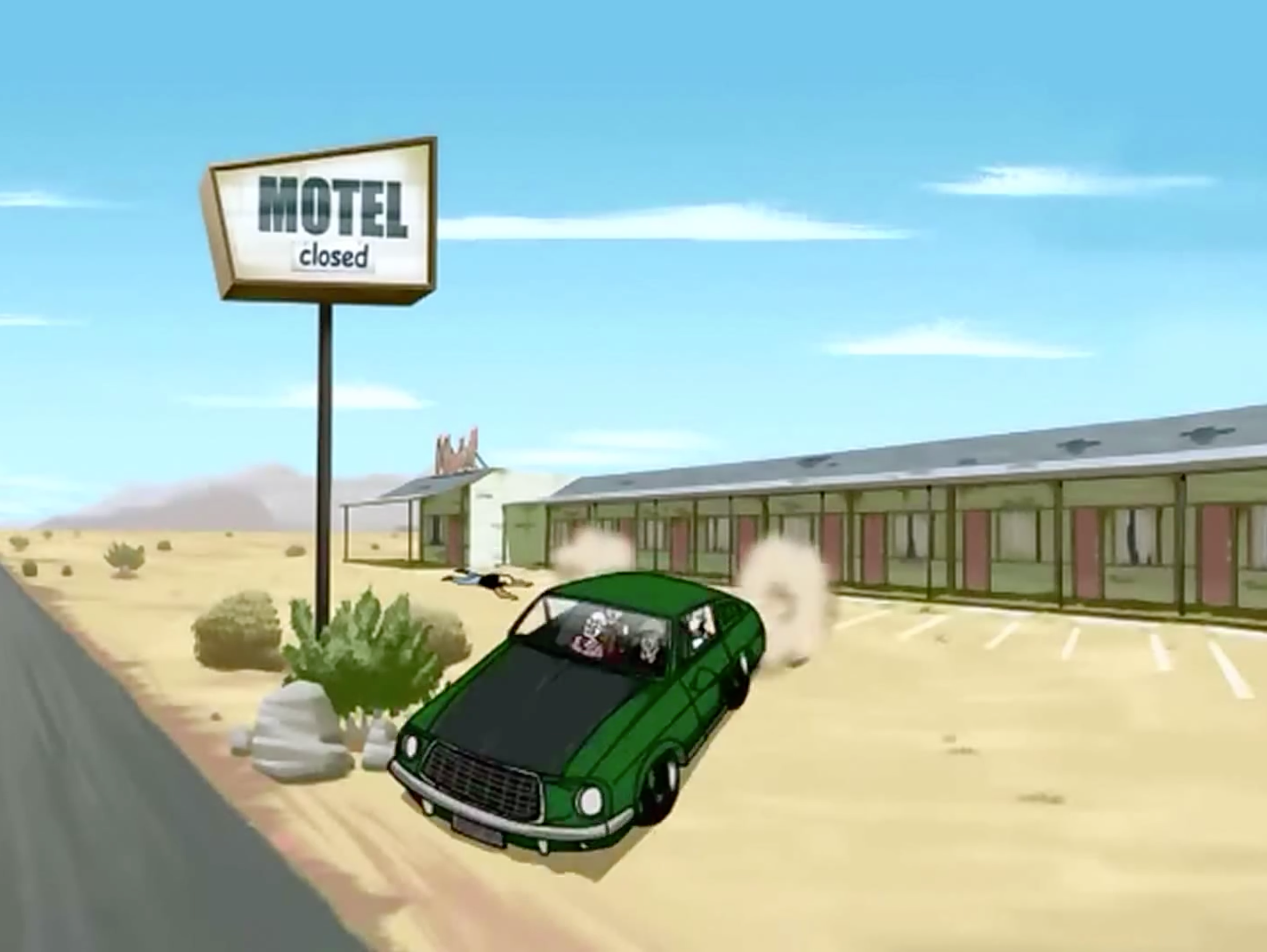 [Update: Tuesday, September 8, 2020, 8:33 p.m. - Upon reviewing half of season one, there is a split second where Moltov's Dodge Viper appears to pull Brock Samson from a tar pit in The Incredible Mr. Brisby.]