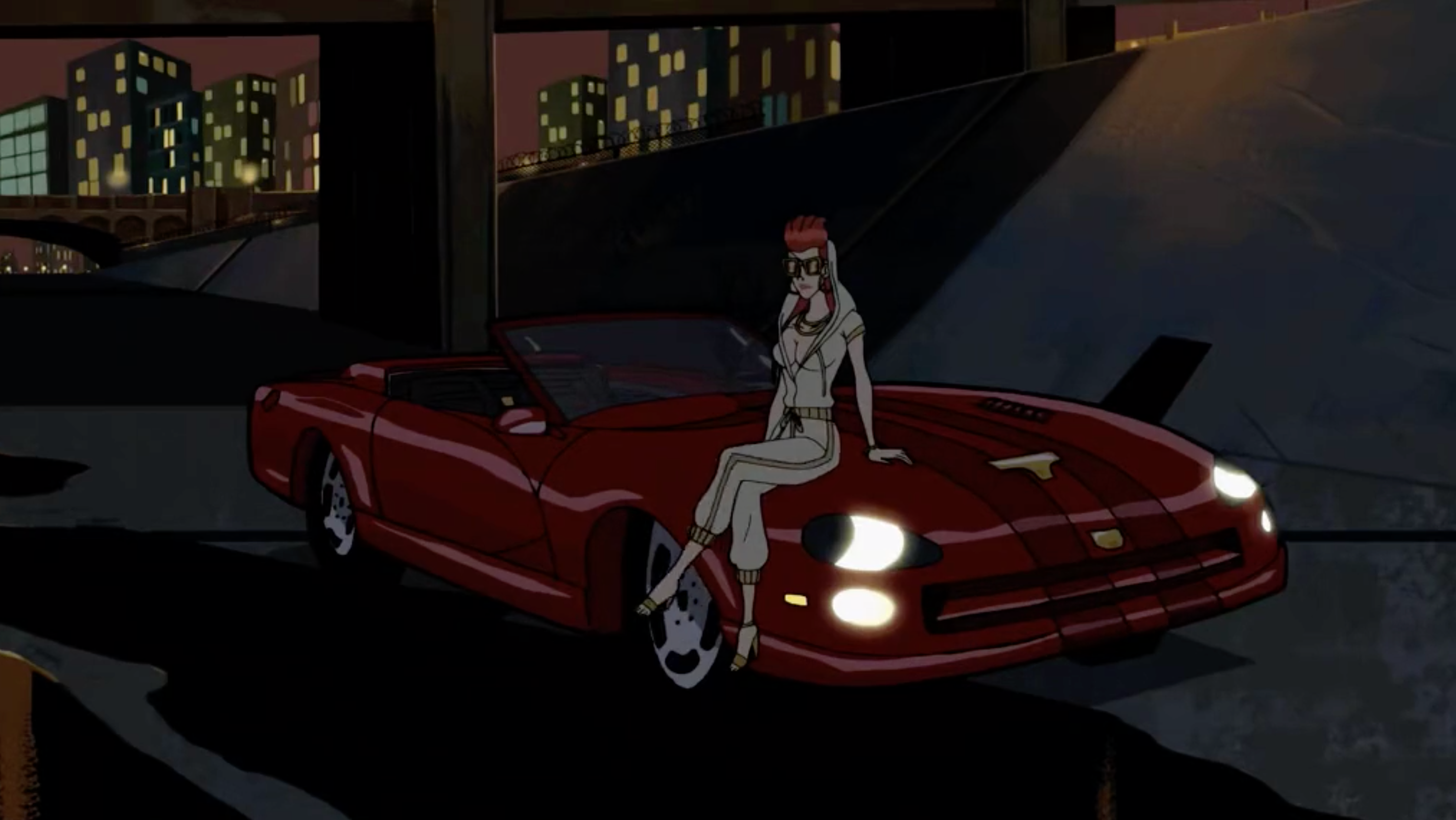 We'll start with the most obvious: Brock Samson, former superspy and bodyguard to the Venture family is spiritually one with his '69 Dodge Charger. The car is the centerpiece for the very first episode of the first season: Dia De Los Dangerous. The episode kicks off with Brock playing strip poker in order to obtain a part for his car while in Tijuana, Mexico. He fights multiple luchadors buck naked in order to obtain the part after being cheated at cards. Later on, he drops his Charger from the family's supersonic jet while inside of it down into the lair of Dr. Venture's most persistent arch-nemesis, The Monarch. Mayhem ensues after that as he gets revenge on some henchmen, and you get some great close-ups of the Charger in detail as well as plenty of animated blood: