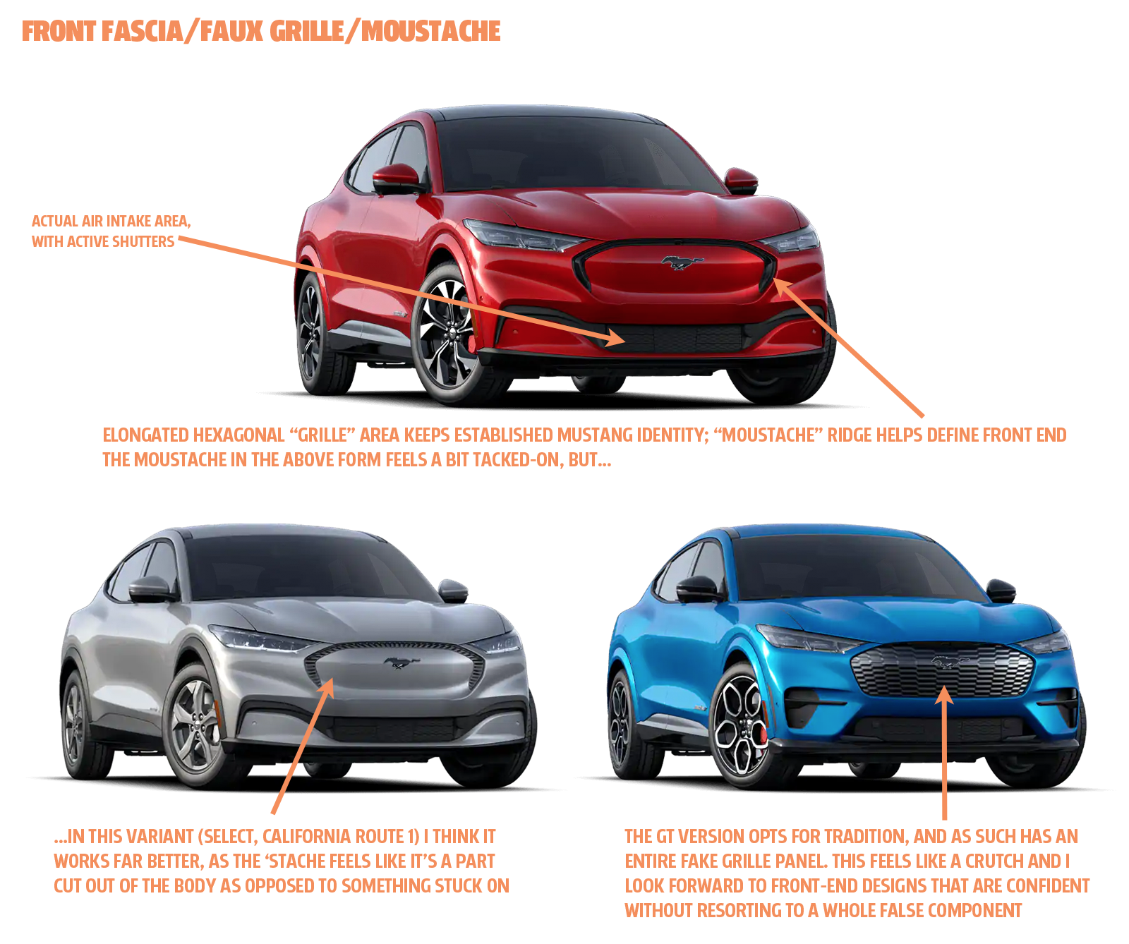 Looking at these elements, I think one of the most interesting ones is the "grille" element, since this is the first time Ford is having to translate the grille design without the benefit of its fundamental functionality or purpose.