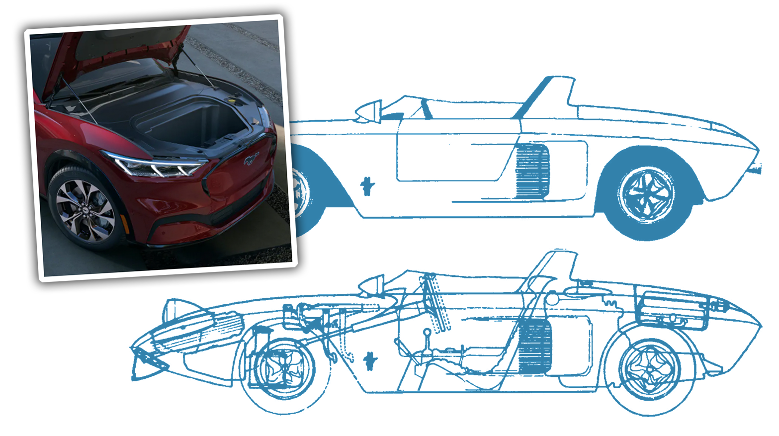 I'm also very pleased that the Mach-E has a front trunk. It's not the first Mustang to have a frunk—the original Mustang I concept car had a mid-mounted V4, and also a front storage compartment mostly occupied by the spare tire, but that counts as a frunk, in my book.