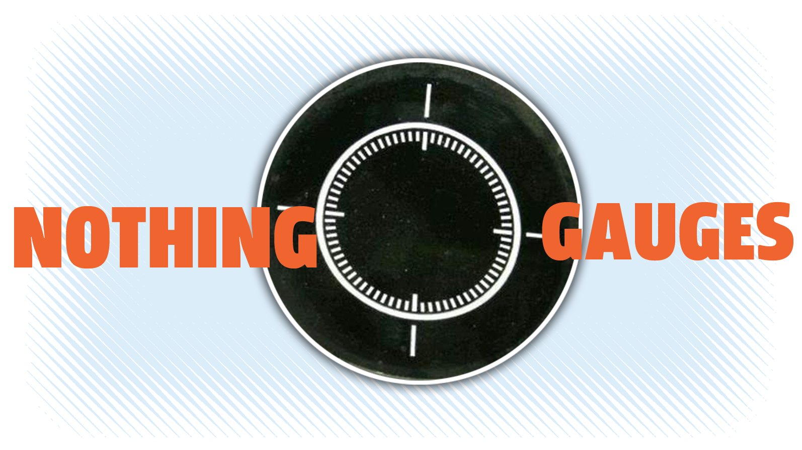 And what's in this gauge? A calligraphic flourish, centered, surrounded by a squared-off ring containing 24 hash marks. It looks kind of like something you might see on cookware, or a toaster made in 1976.