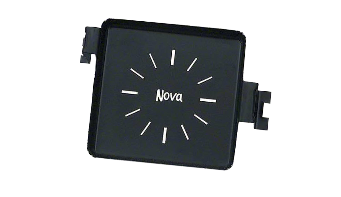 Sometimes they would stick the car's logo and name in the blank spot, but even when they do that they just can't help but sticking in some fake hash marks as well, like this non-clock design on the Nova panel.