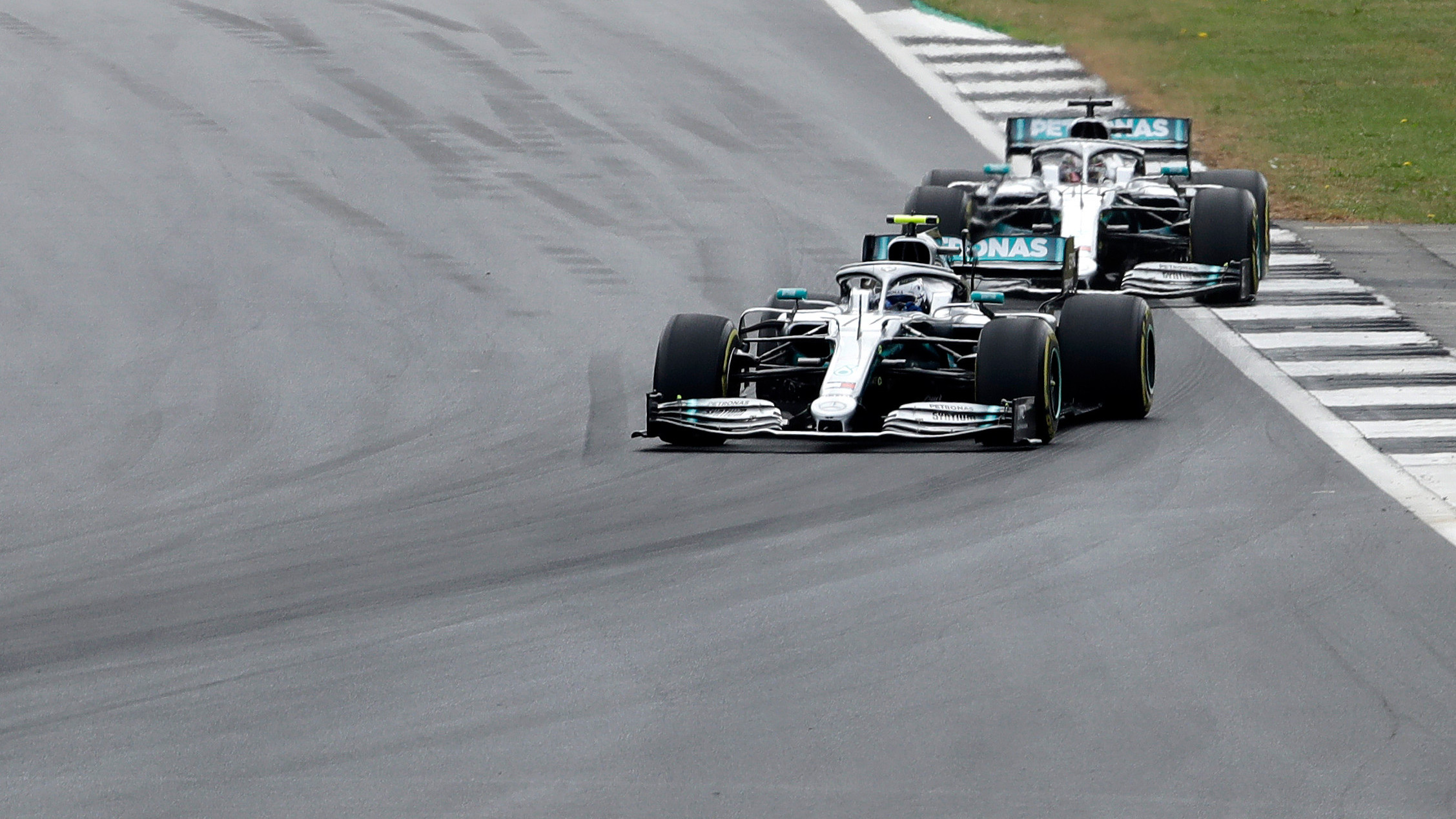 Despite getting away from the start in fabulous fashion and running well ahead of his teammate, Valtteri Bottas failed to win the British Grand Prix. For the first segment of the race, the two Mercedes ran in lock step one behind each other. Bottas, as the leader, was given the option to pit first, and he took it. Lewis, meanwhile, stayed out a handful of laps later to play a different strategy. That paid dividends when Alfa Romeo's Antonio Giovinazzi spun off and got stuck in the litter, calling out a safety car.