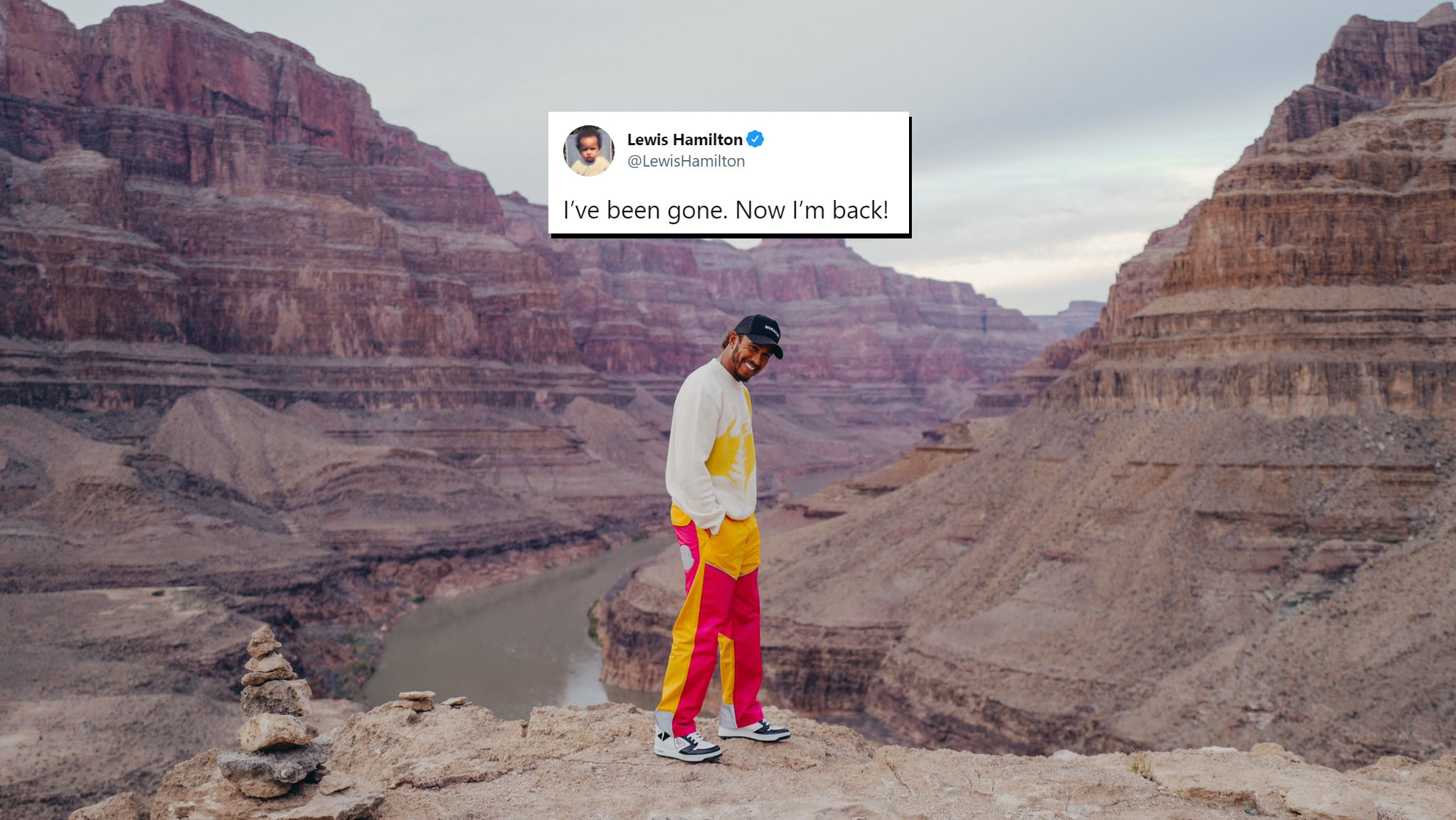 On Twitter and Instagram, Lewis Hamilton posted a picture of himself on vacation at the Grand Canyon, captioned, "I've been gone. Now I'm back!" Hamilton's succinct message is reminiscent of how Michael Jordan ended his retirement and returned to the Bulls. Jordan announced his return with a two-word message, "I'm back." attached to a press release faxed to the media by his agent.