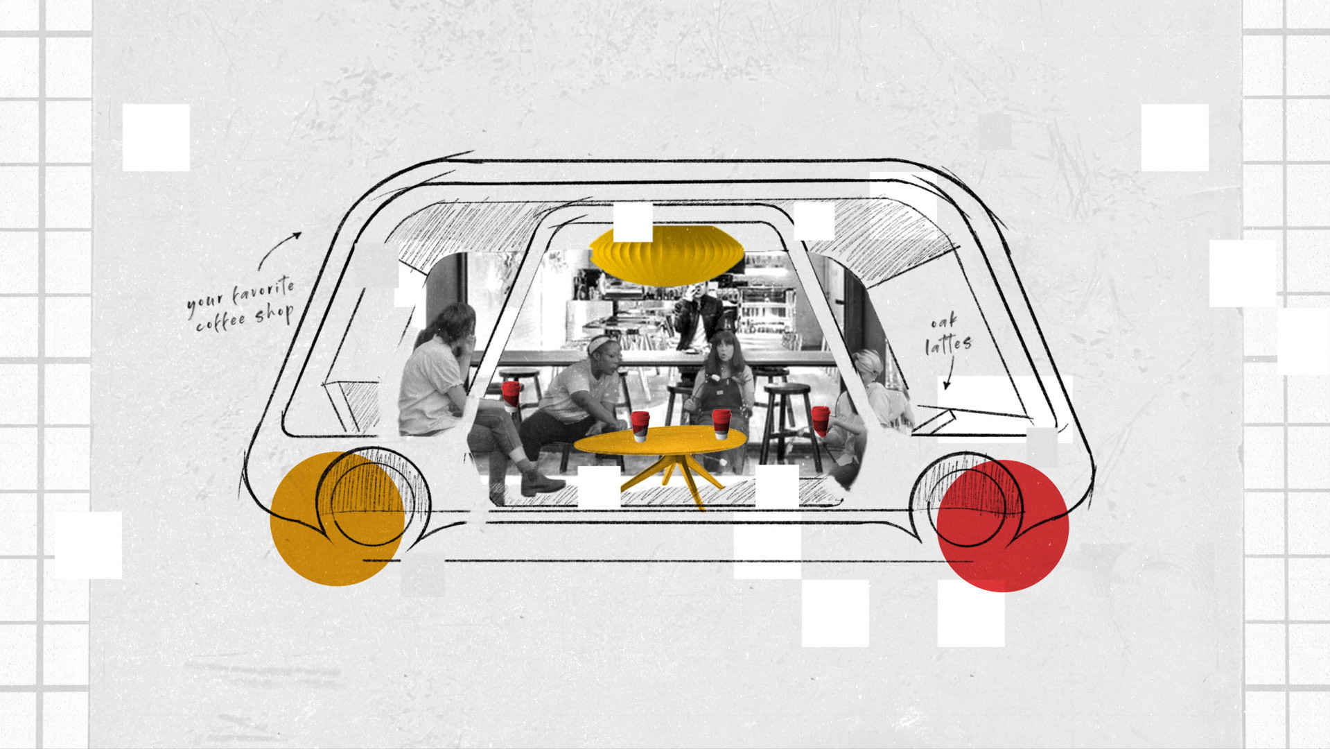 Sarah Sandman is coming at autonomy from a completely different direction. She's an artist and designer, so her vision transforms an autonomous car into a glass box filled with swivel seats. The goal is to interact with the world around you—or even your loved ones—in a way that you currently can't when you're behind the wheel. It's kind of like a moving table in a coffee shop; you can chat with the people in your own little sphere, or you can touch a button and communicate with the people outside your vehicle.