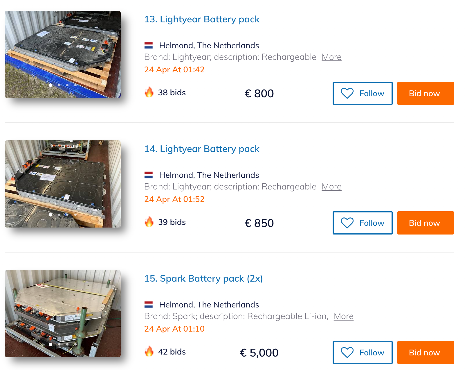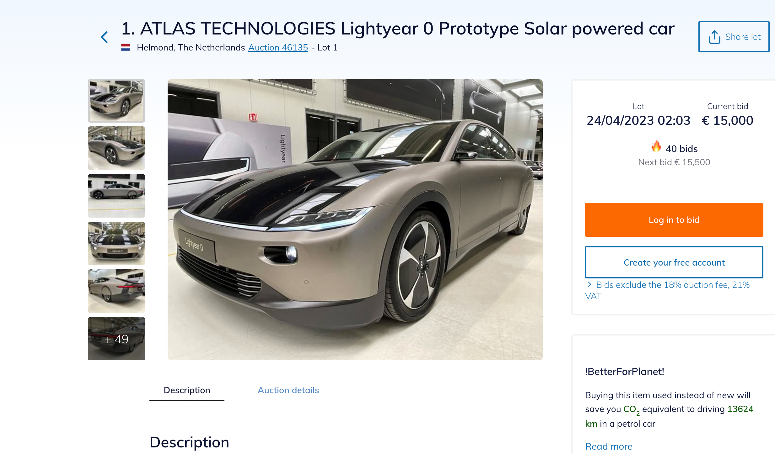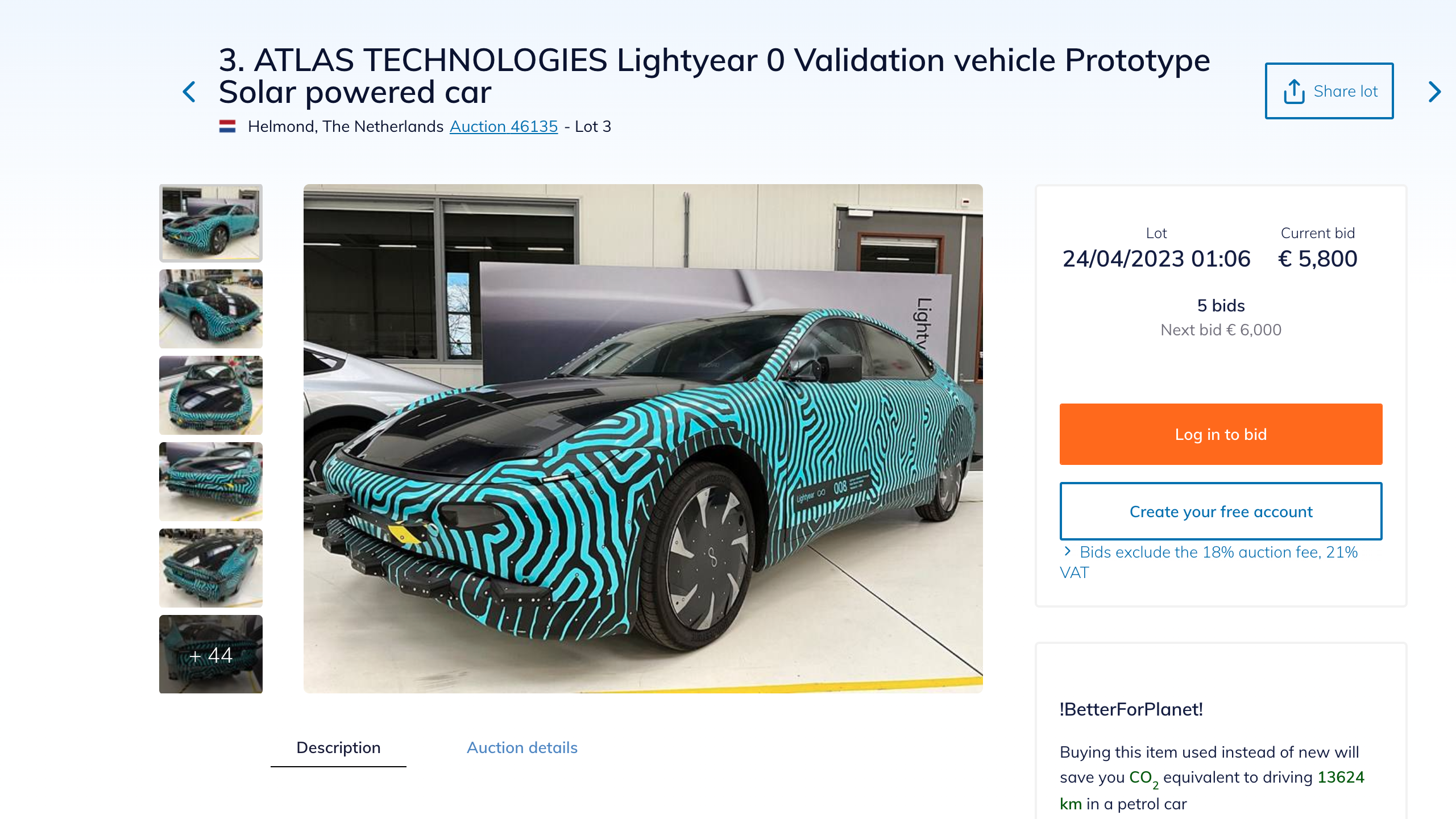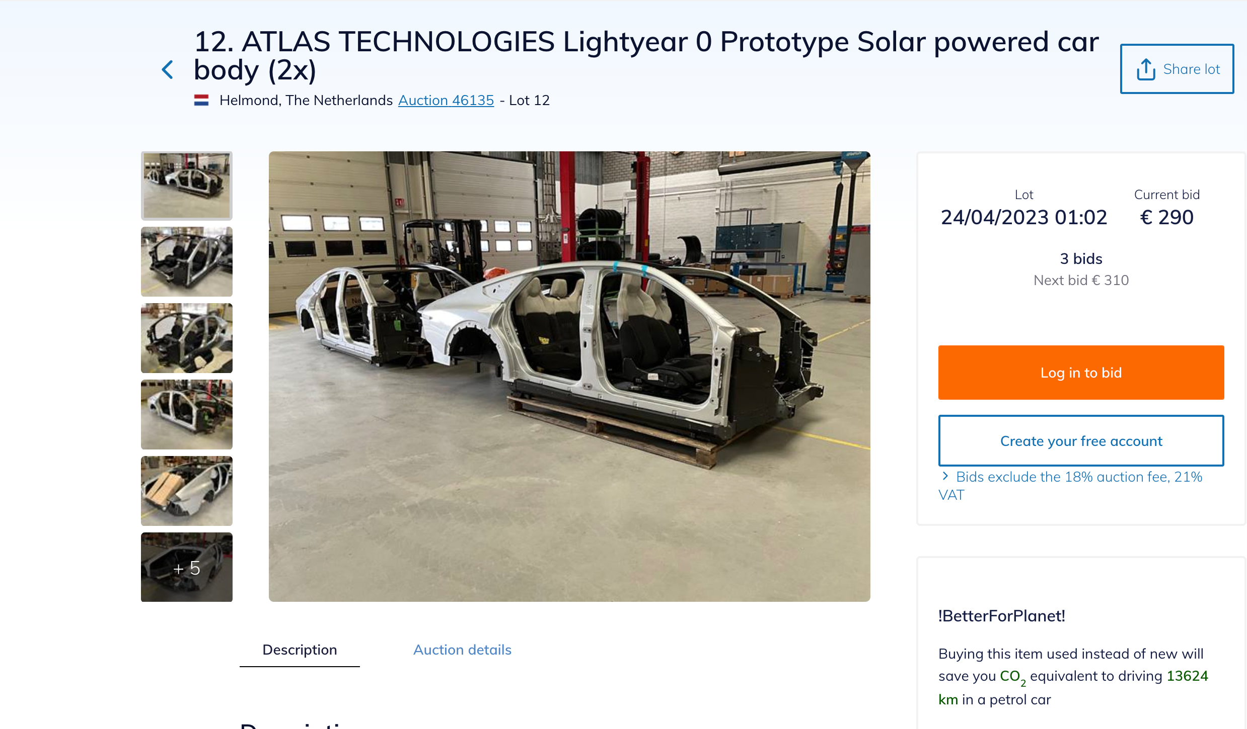 The auction is being handled by European auction site Troostwijk, and there are some serious goodies to be had here. Want to get your hands on a prototype of the Lightyear 0? Feel free to bid on not one but six development mules of the solar powered EV. One of them even looks near preproduction ready.