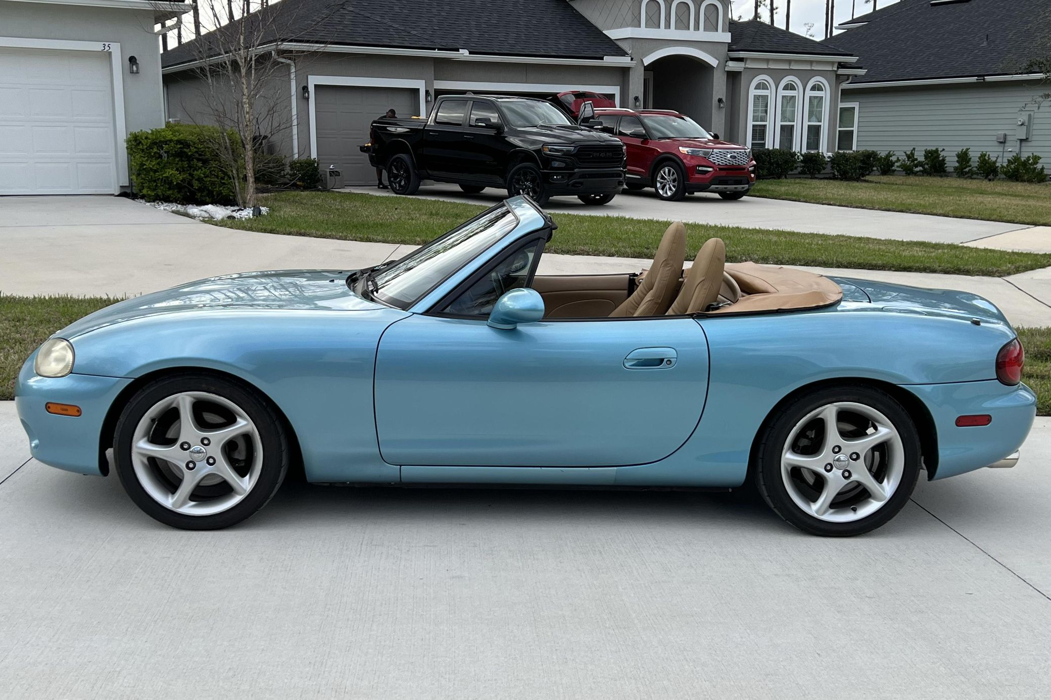 Currently for sale on Cars & Bids, this 2001 Mazda Miata looks completely unintimidating with its Crystal Blue Mica paint and tan interior. It's not quite in showroom condition, but it appears to be in fantastic shape for a car that's more than 20 years old. If you saw it in a parking lot, you could easily assume it's just a nicely kept Miata driven by a sweet older couple. Except it's hiding a big 5.7-liter secret under the hood.
