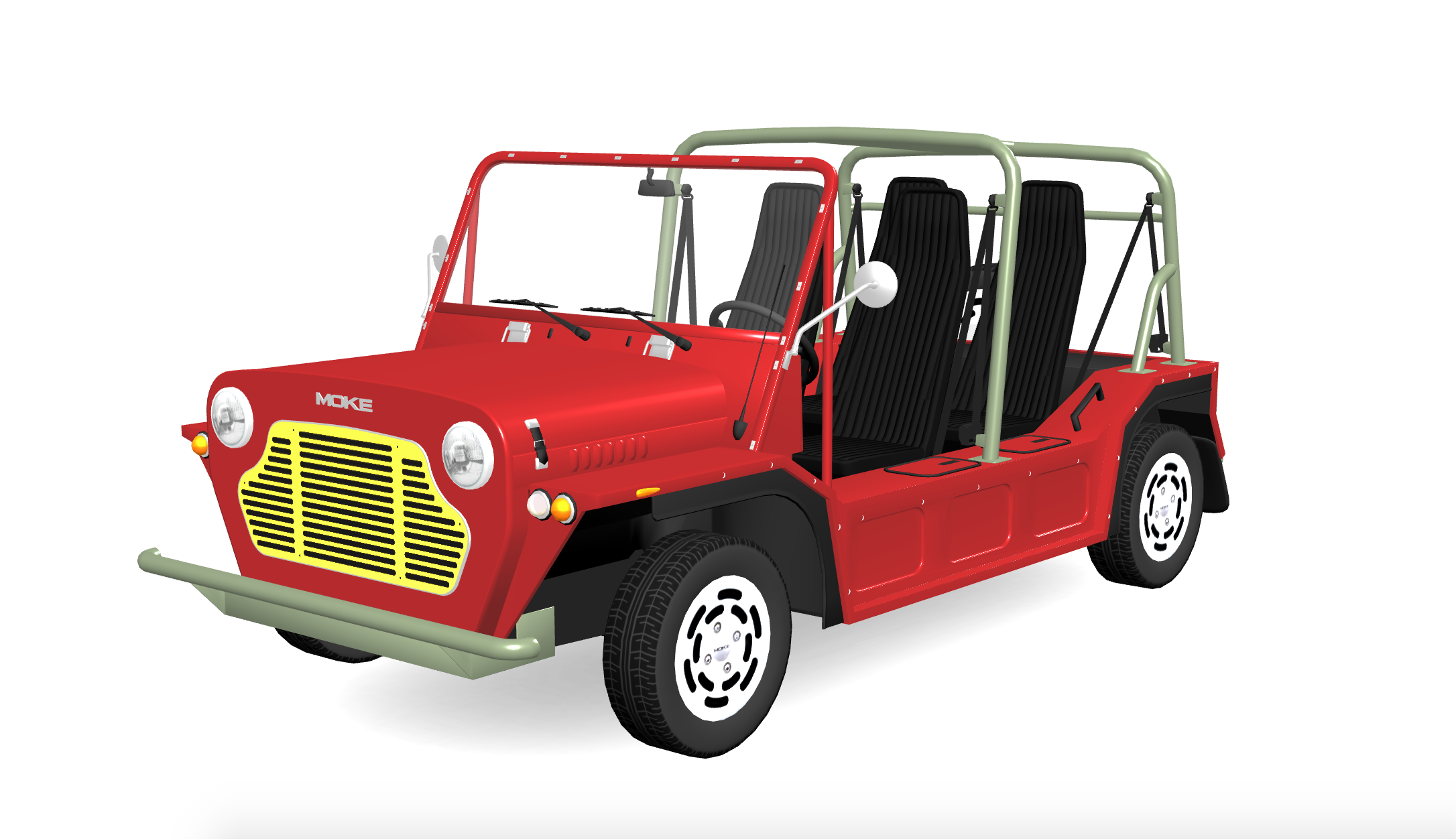 But even if you can't order one, it's pretty fun to go to the Moke site, scroll down to the configurator, and spec out your own special Moke with whatever color body, roll bars, bumpers, and grille you want.