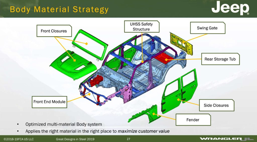 A modern Jeep has actual crash structure under the fender and behind the grille (see JL below), but the DJ has just the stamped steel fender and stamped steel grille — there's nothing else.