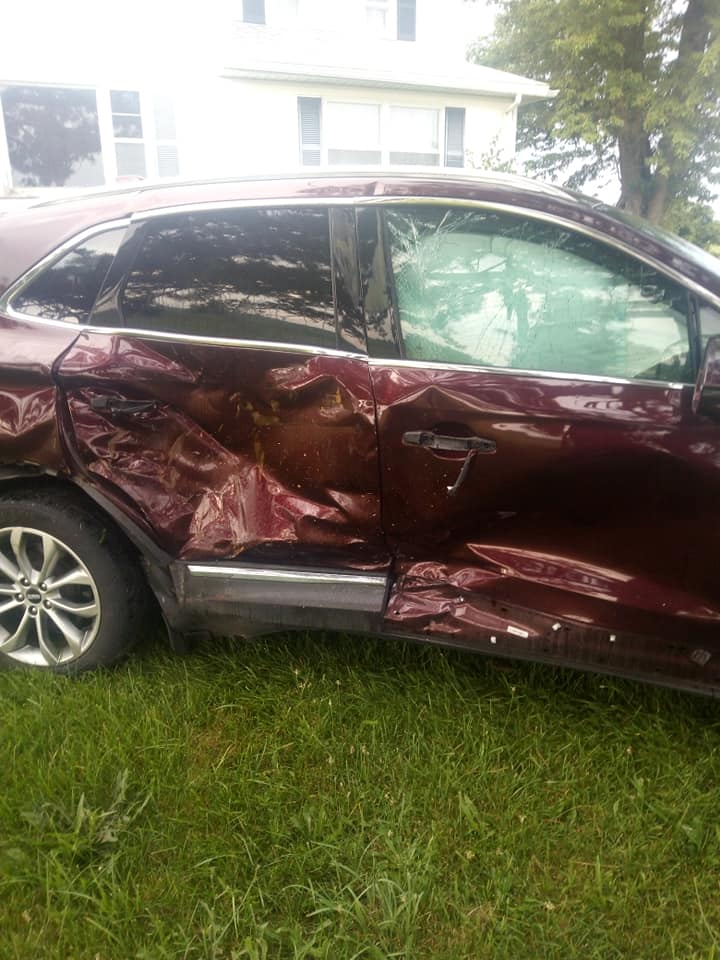 "Her car is on the left, mine is on the right. I was driving...55 [mph] which is the speed limit, and I see a semi truck with a whole bunch of cars behind it in the opposite lane," Langley told me over Facebook Messenger. "So I'm just driving past it and the lady behind the semi truck wants to get to a house on my side... Instead of waiting for the semi truck to move so she could pull into the driveway she thinks she could just turn [and] drive straight into the yard."