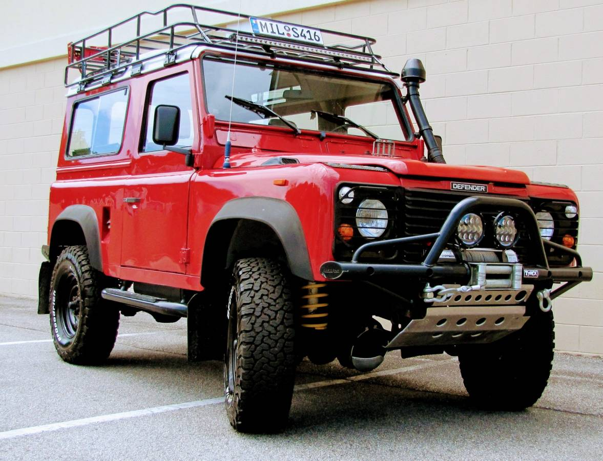 Of course, this isn't just any bright red Defender. This Rover is English-built, Italian-modified, and spent its early life in the hands of an olive farmer in fair Verona (where we lay our scene). It's off-road ready, lifted and armored, but has aftermarket sound deadening on the interior to make your experience a little more upscale.