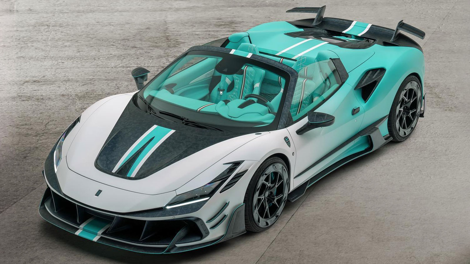 Mansory is back with another heavily modified Ferarri, this time giving the F88 Spider a slick teal paint scheme and 880 hp.