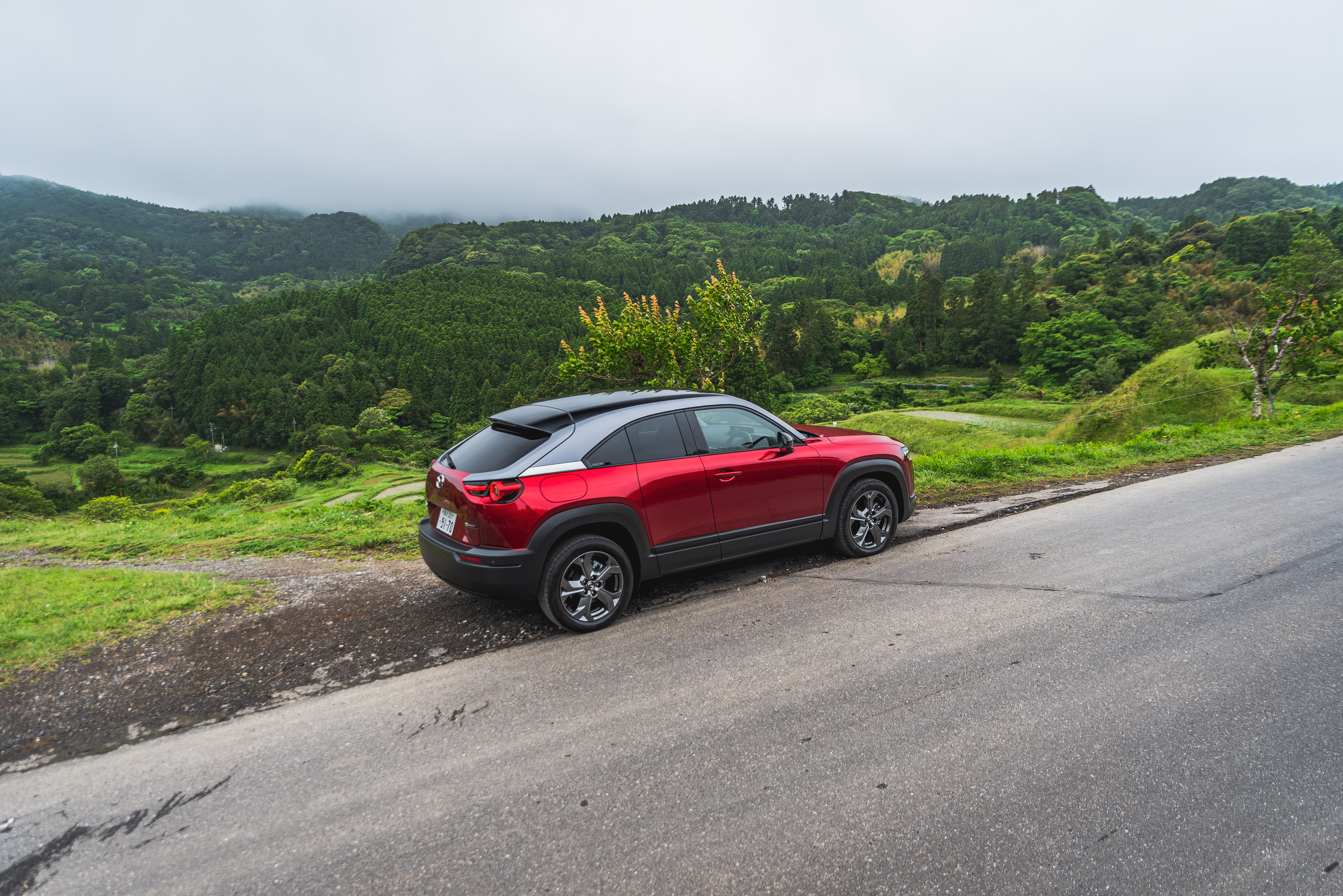 If all you want from your electric car is something that's easy to use, has a slightly raised driving position, and doesn't need ludicrous speed, then the MX-30 EV ticks all those boxes. It's got a planted and stable ride with decent damping, if on the firm side. That's fine on Japan's smooth motorway, however, it does struggle smoothing out larger bumps at low speeds. I've had a go in the mild-hybrid version of the MX-30 prior to driving the full EV version and unsurprisingly the EV felt quicker and smoother. Though, it should be said this isn't some 0-60 in 1.1 seconds EV. With a modest 144 horsepower and 200 lb-ft of torque, Mazda only claims 0-60 in 9.7 seconds. That's hardly hot hatch quick, but for daily use around town it's sufficient. The EV trademark of instant torque is great fun off the lights and when you mash the throttle you get a bizarre noise pumped in. It's akin to an outboard motor in the distance.