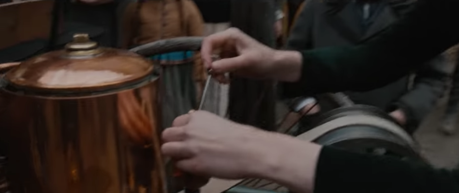 The beginning feels like a horror movie, with the ominous music and the peasants toiling, spotting the car puttering by and responding in fear, screaming about a witch coming. From that moment on, everything Bertha and her sons encounter in the town where she had to stop to buy ligroin, a petroleum distillate the motorwagen ran on, is hostile and aggressive.