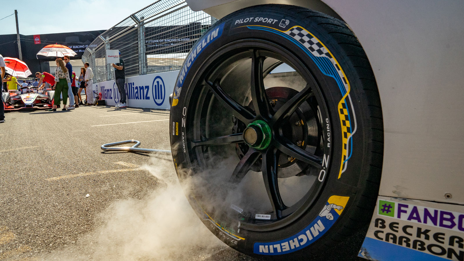 Today, this tire takes everything Michelin learned while developing different compounds for Formula E and puts it out on the highway for regular customers. It's also the same tire used on the Formula E Porsche Taycan safety car. Getting this tire on the road the company's "goal of our adventure here," says Pirracchio.