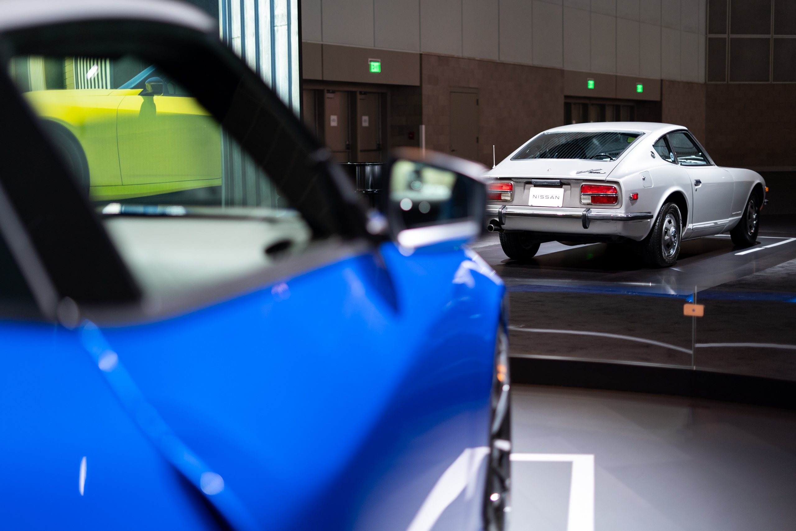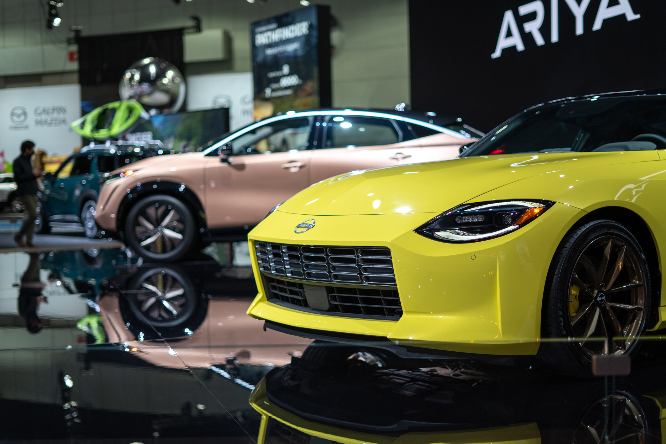 Nissan debuted the new Z in an incredible highlighter yellow-green, and in doing so ensured that no camera would ever accurately capture its true hue. The company actually brought both of its debut Zs to the auto show, with the green-and-gold model sharing a seat of honor with the new Ariya. The blue Z, however, got an even more interesting companion.