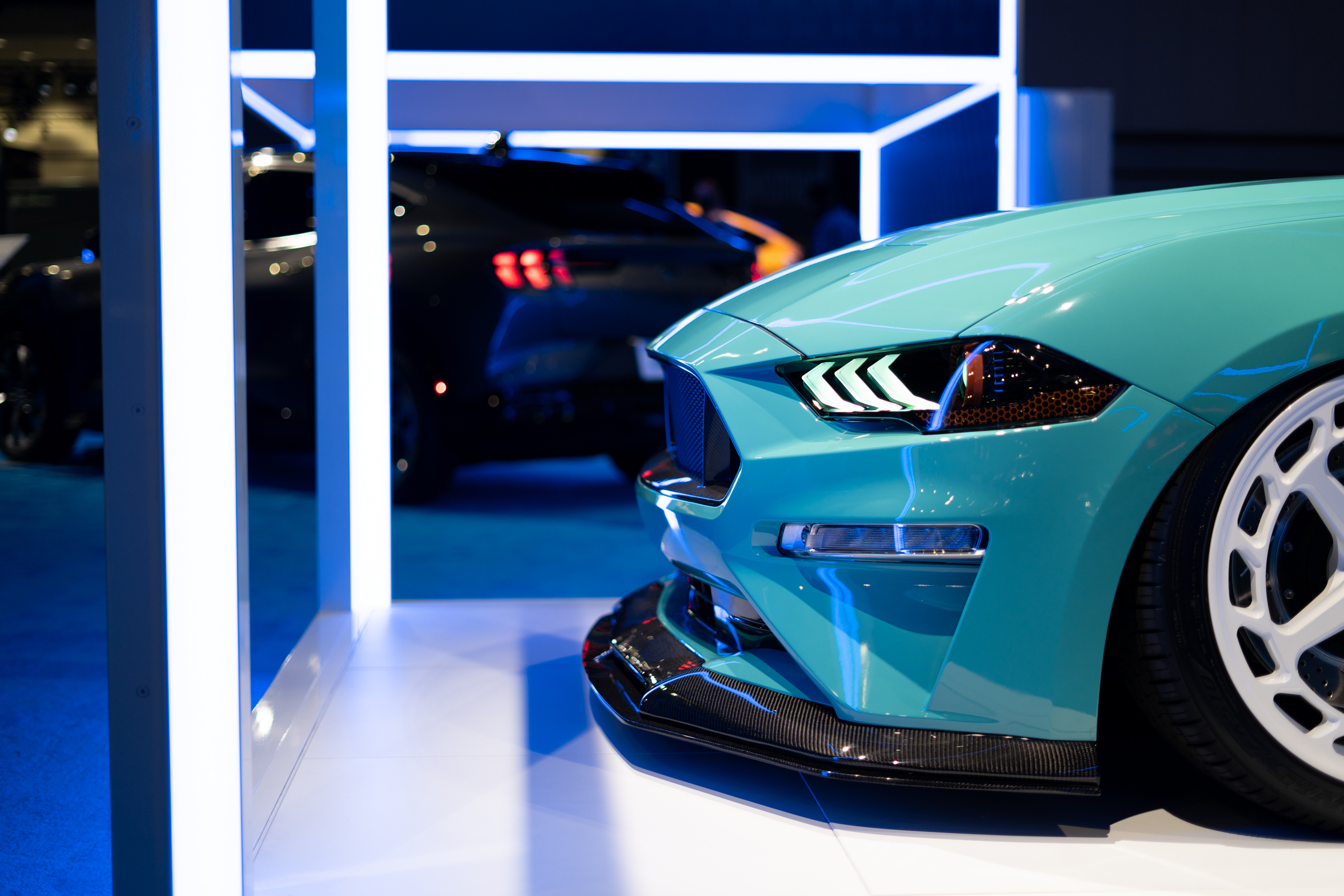 Counting all the Mach-Es against the Shelby and RTR Mustangs that Ford had on display, the numbers were about even. This teal Ecoboost tipped the scales, though, in favor of Mustangs with fewer than eight cylinders. It also happened to be the coolest two-door Mustang in the building.