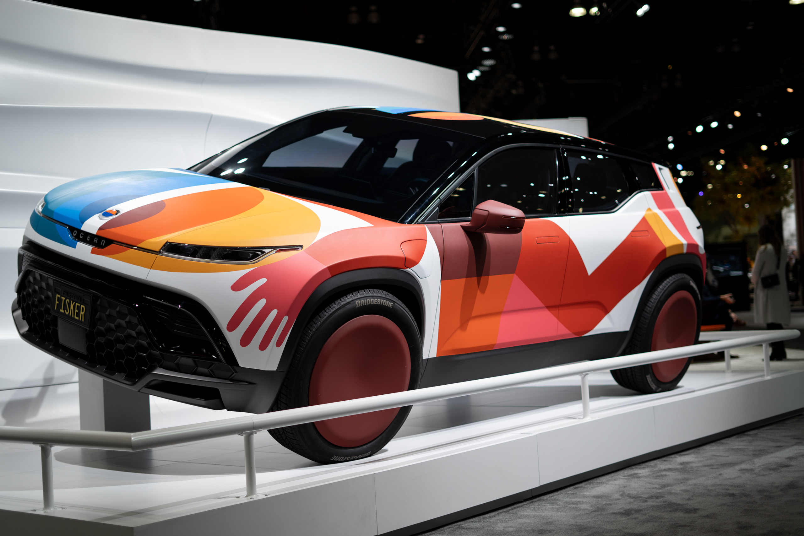 Fisker brought the new Ocean crossover to LA. This concept version had a sort of "Default Keith Haring wallpaper on the LG Voyager" aesthetic going on, which I truly hope is a factory option for the production vehicle. Make it an added-cost option, Fisker. It's worth it.