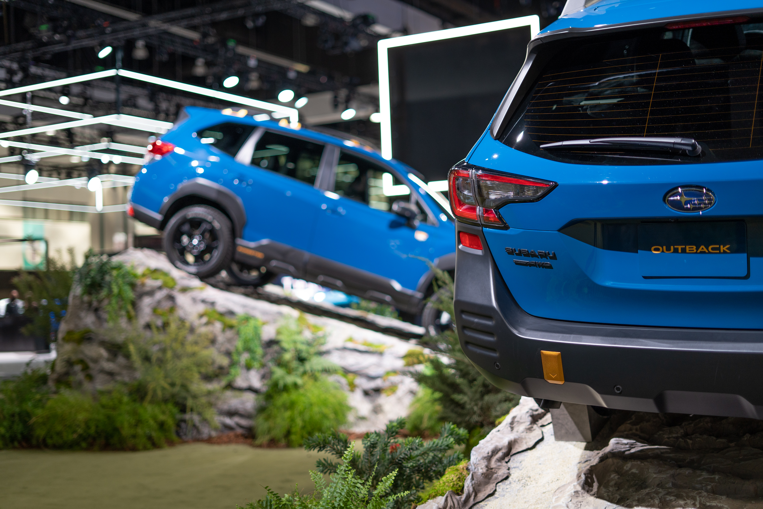 Subaru also brought the prototype Solterra out, which was my first chance to see it in the metal. It was sitting atop a screen that showed a rushing forest floor, which was not at all disorienting and nauseating to walk on, but was at least on-brand for Subaru's full commitment to Outdoorsiness. I still think the bZ4X, the Solterra's Toyota-branded twin, looks a bit better, though.