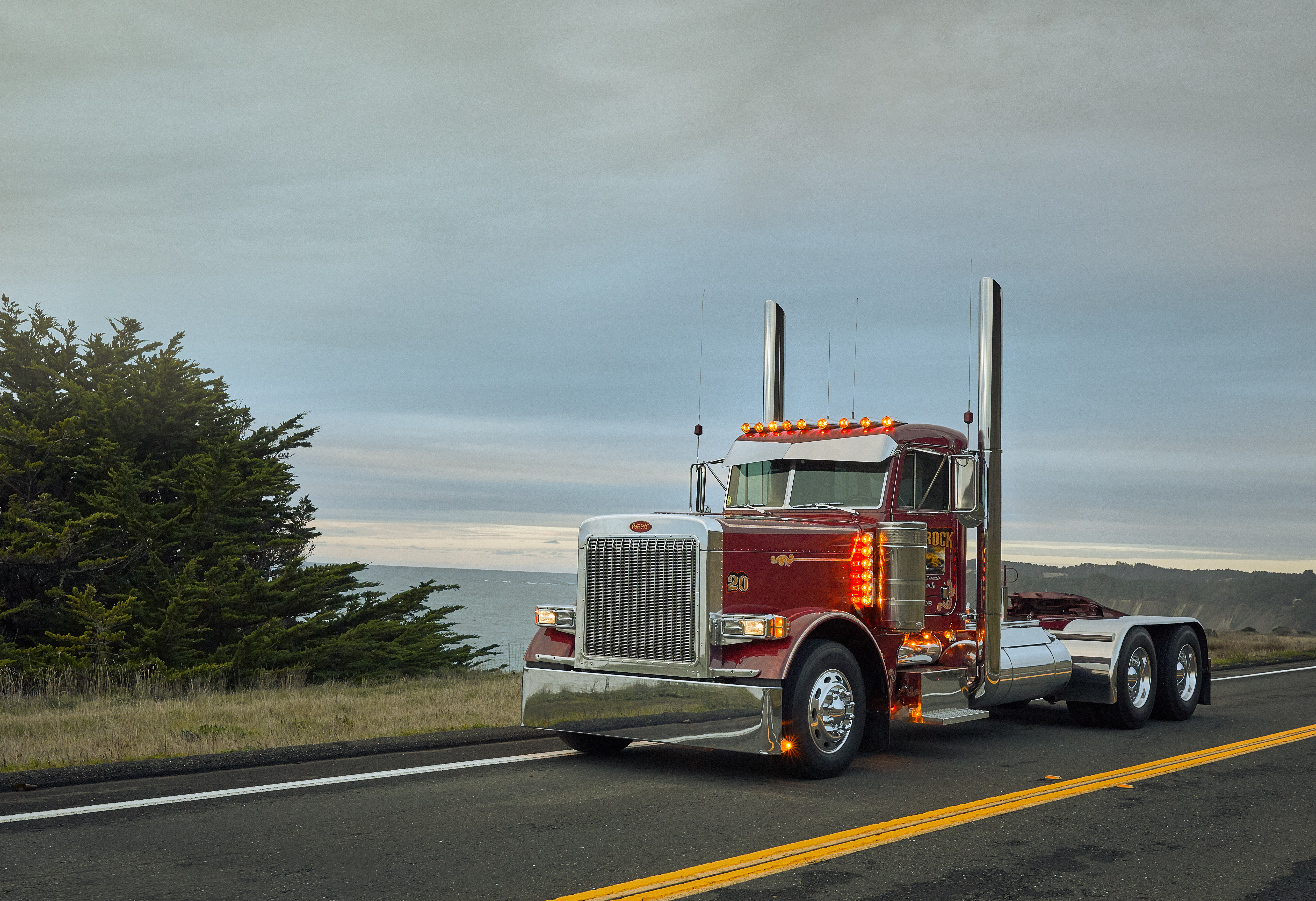 Shot using Portra 400 with my Mamiya 7II, this Peterbilt 379 belongs to Richie Hay and Bed Rock Inc., shot on location in Point Arena CA.