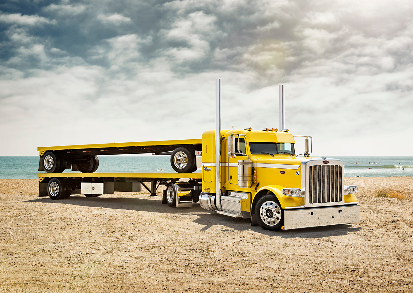 Peterbilt 389 Hay Hauler on the beach in Malibu. Rich's new Peterbilt 389 from the Central Valley with decked double trailers at the beach in Malibu.