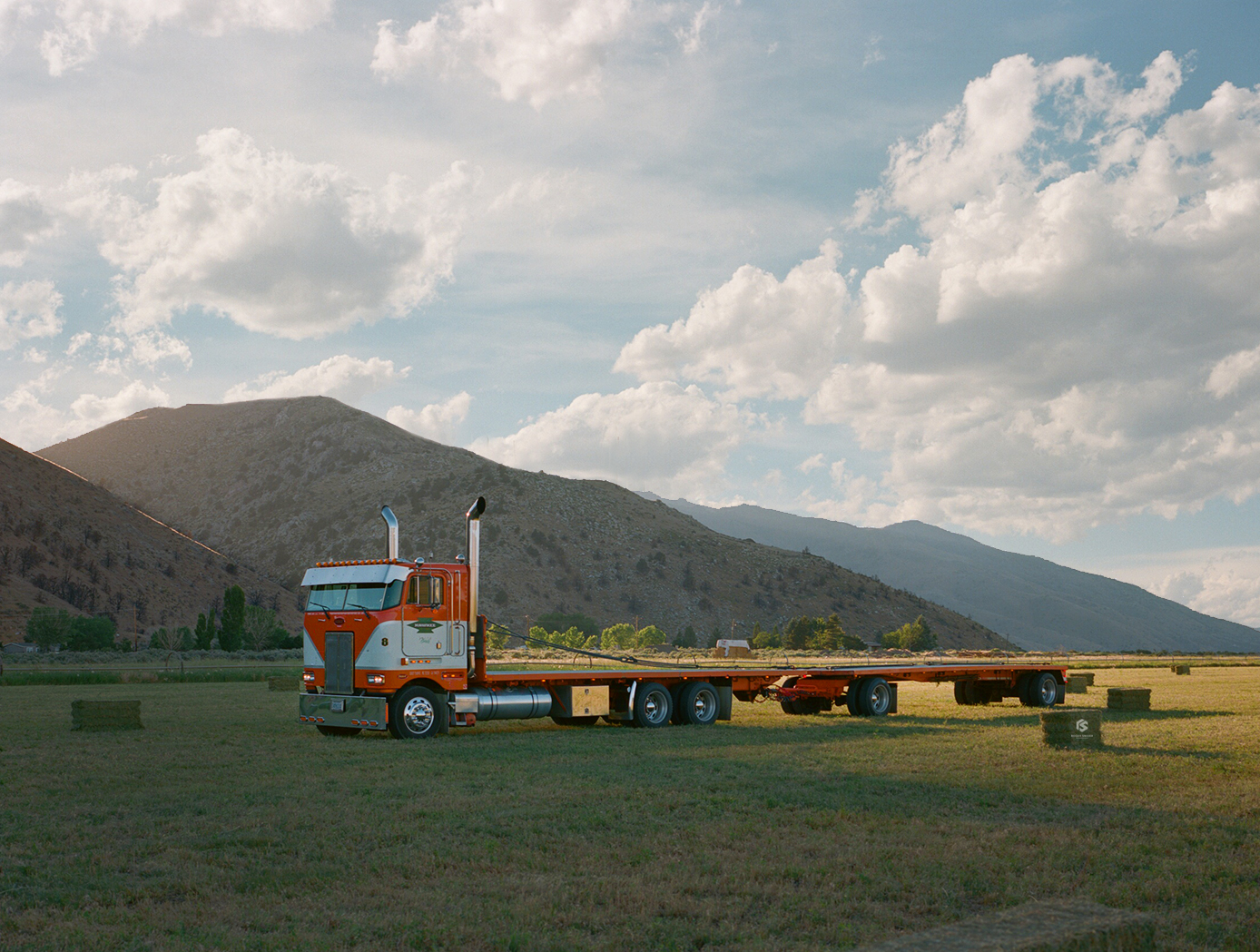 Here's Bill Hawhee's custom Peterbilt 362 hay hauler shot on film in the Topaz Lake area of CA.