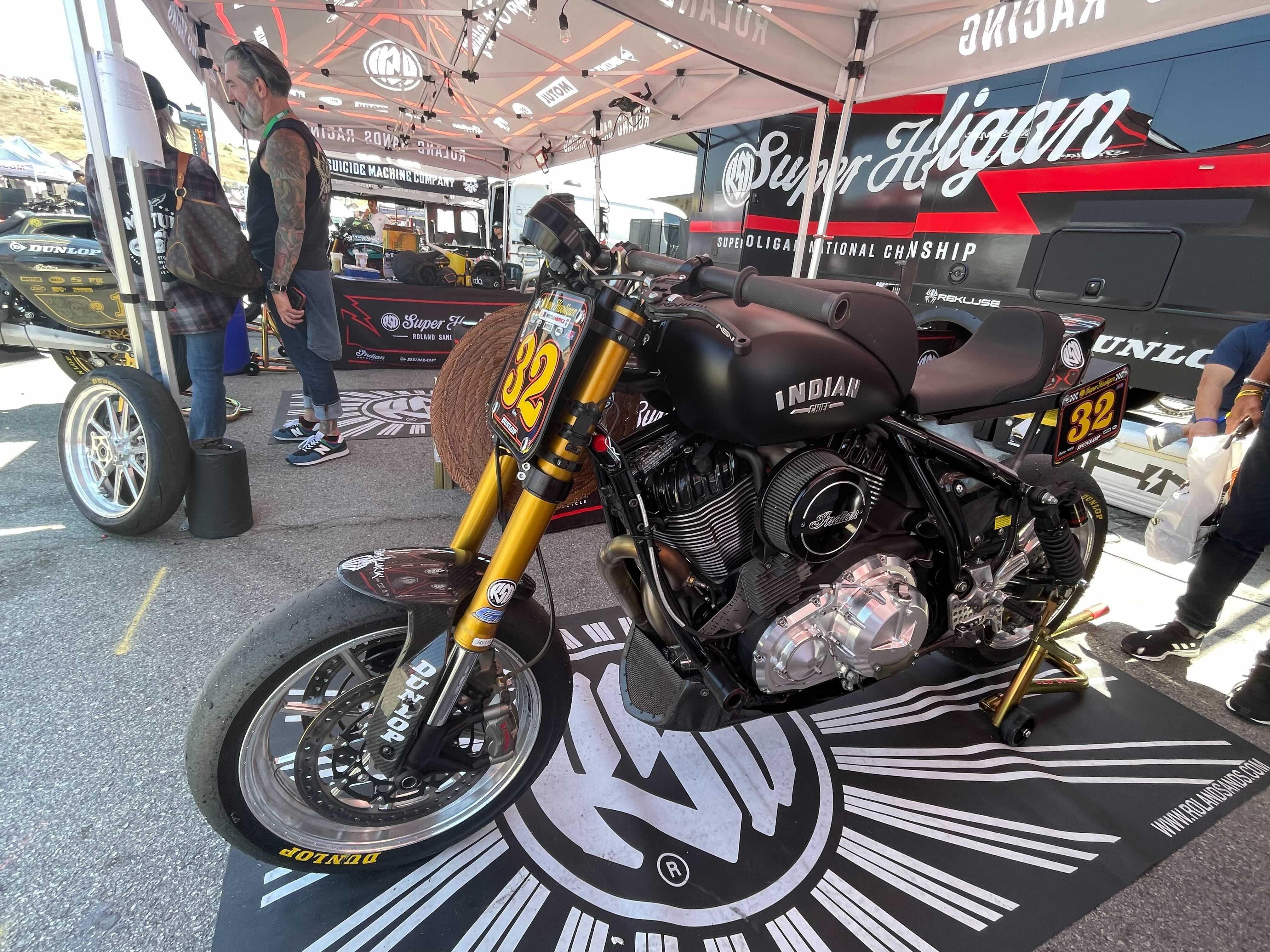 In addition to the KotB bangers, MotoAmerica added another incredibly addictive class to the mix. This time they tapped the marketing magic of Roland Sands, hauling his Super Hooligans series up to the big leagues. Super Hooligans was created as a multi-disciplinary series for a wide variety of compact-ish naked bikes to run with American Flat Track. This series rips on dirt, but it's even cooler at a big track like Laguna Seca. Some of the racers in this class had never set foot on a road course, but it produced the typical bar-banging fight that Hooligans is known for. Sands built this gorgeous Chief for Super Hooligans racing, and I'll have a full rundown on the bike later this week.
