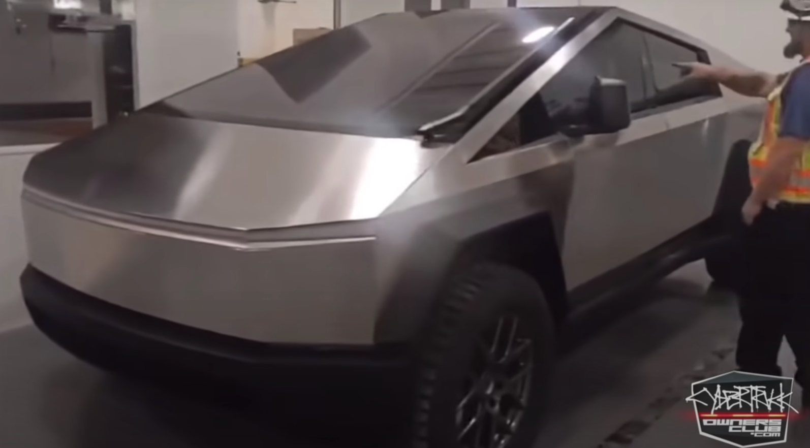 A video posted on the Cybertruck Owners Club forum (yes this is a real thing) shows a really close look at the outside of the alleged prototype. The big highlight? The looooong windshield wiper of course.