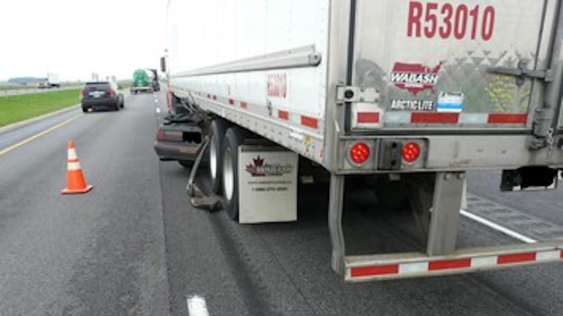 Mustang Driver Somehow Uninjured After Getting Wedged Under Semi, Dragged