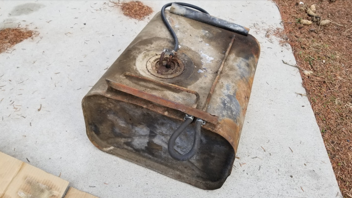 The tank had a bunch of hoses that had rotted out, and some of which simply had nowhere to go since the charcoal canister was long-gone. So Chris and I simply hooked the ports to one another via some hoses, and called it good.
