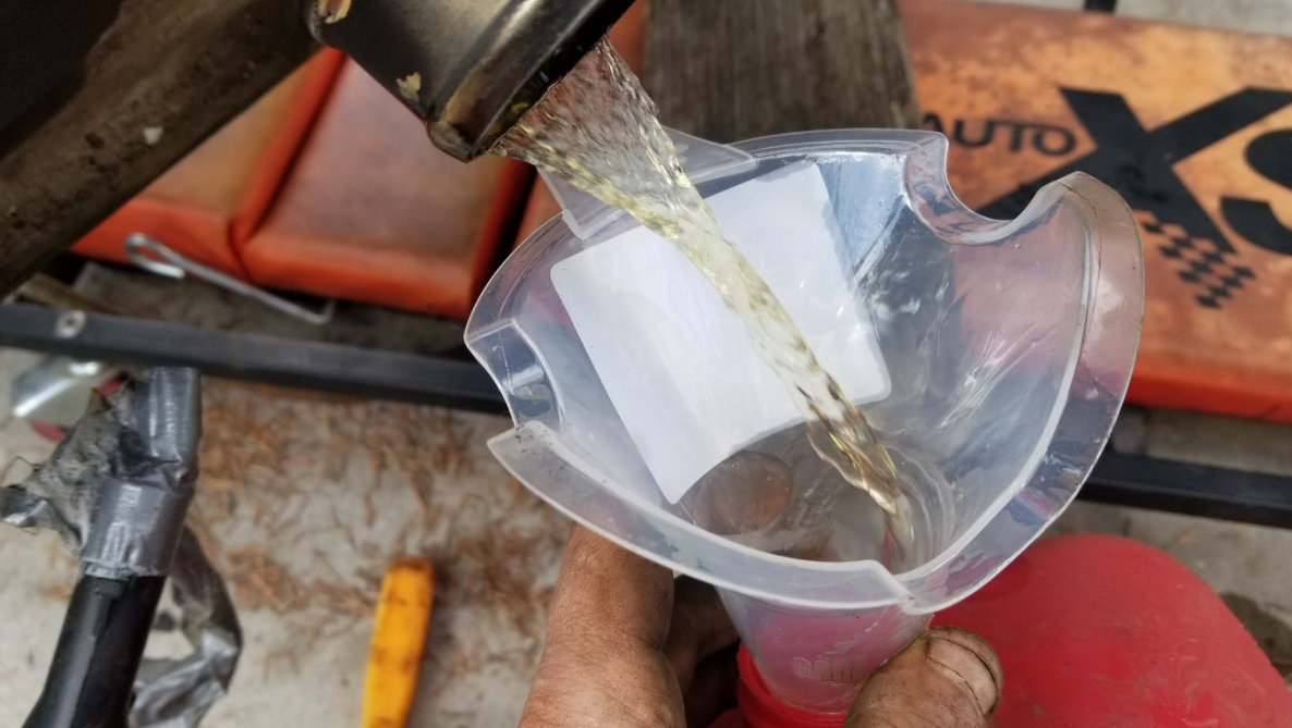 We drained the tank for easier installation, and also because I suspected the fuel was old. My suspicions were right: