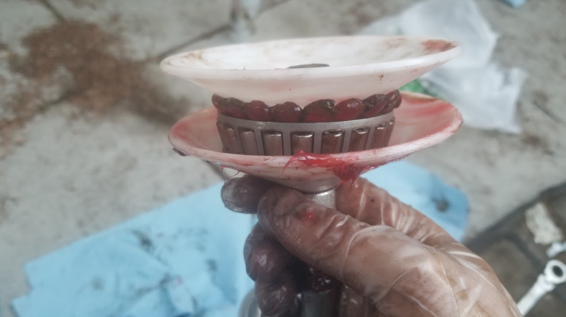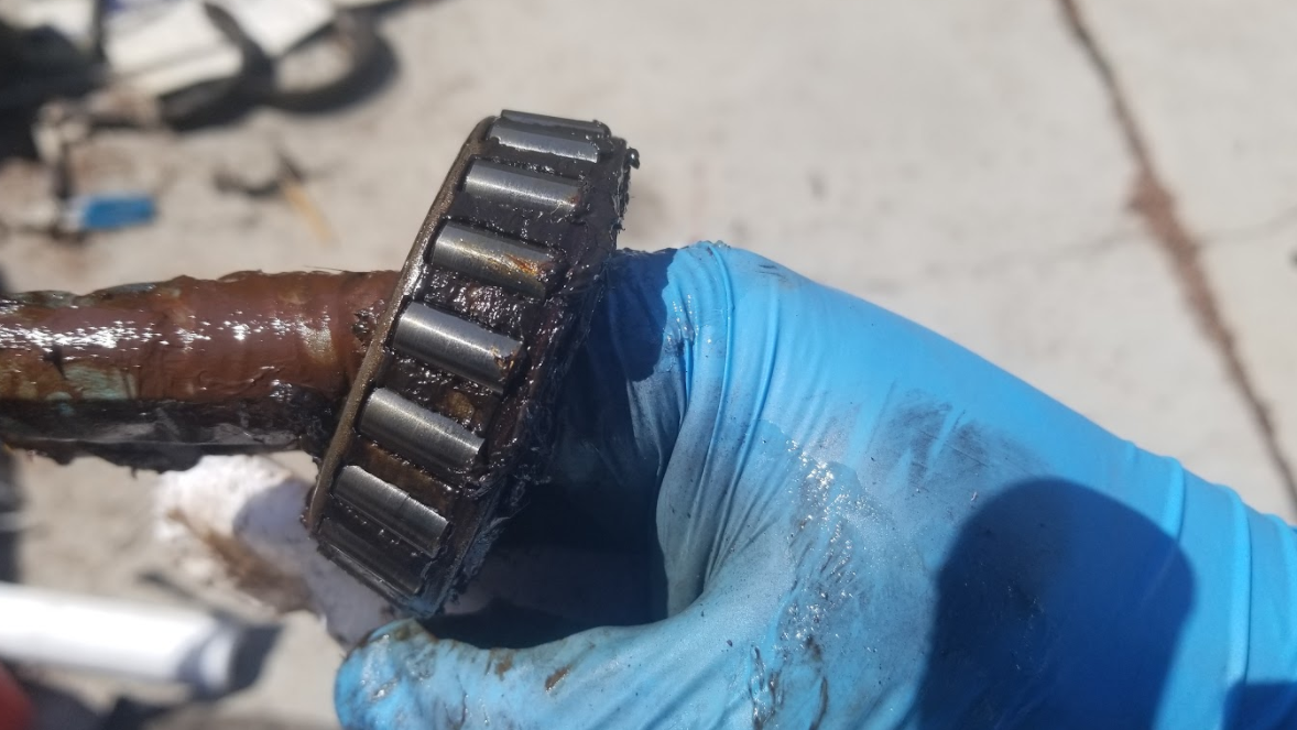 Look closer at that image above, and you'll see needle rollers that aren't lined up perfectly vertically, indicating that some are missing. I'd guess that silver paste is what's left of them.