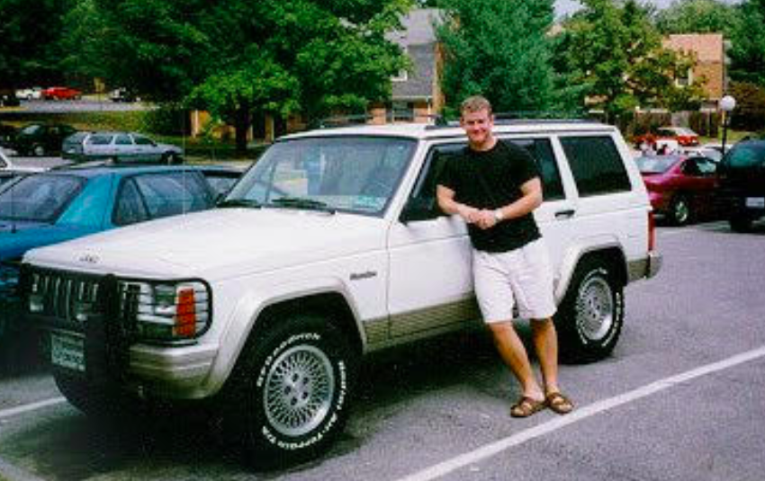 His first car was a 1990 Plymouth Sundance, which is actually based on the same K-car platform that underpins my van. While studying engineering a Virginia Tech, Doug drove the white 1995 Jeep Cherokee you see above, and later bought a green 1992 with over 220,000 miles on its odometer. In 2003, he did an epic road trip in a then-new Mini Cooper, and later, his Grandmother in New York gave him a beautiful 1972 Mercedes 220.