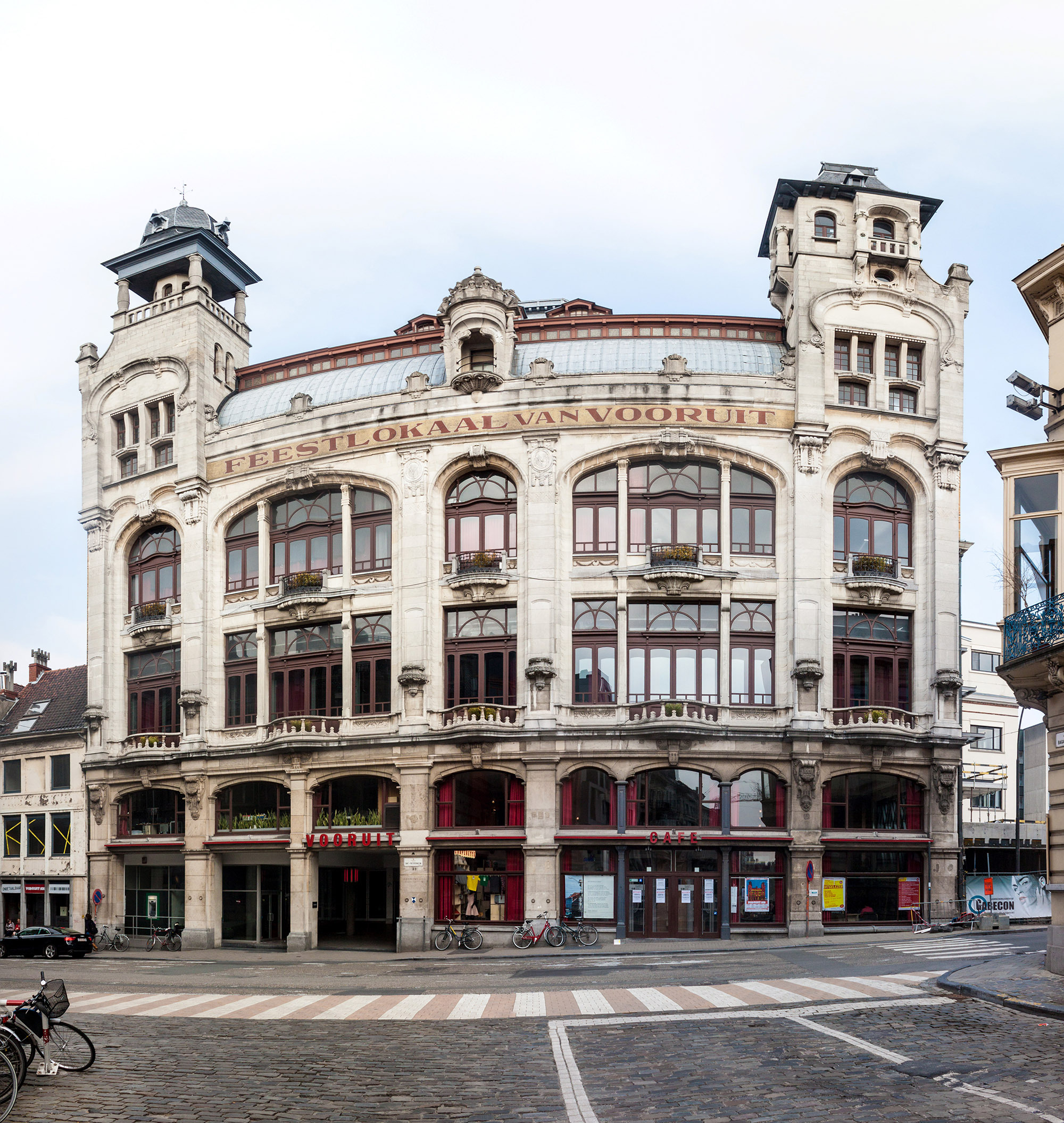 The building is basically an arts building for the people of Ghent, having started as the headquarters of the city's labor movement in the early 1900s and as ground zero for the socialist push. Nowadays, it's used as an event space, often for techno concerts.