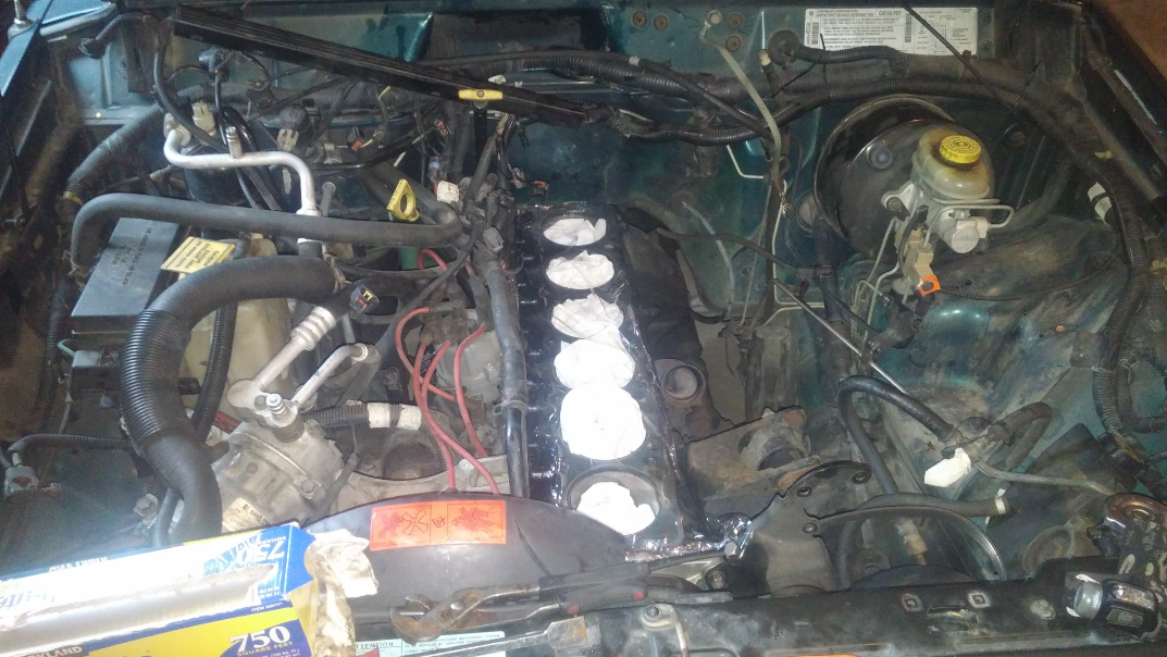 Bobby, who, at the beginning of this trip, was a novice wrencher, quickly became a pro. He unbolted the exhaust, intake, AC, valve cover, rocker arms—everything, and removed the cylinder head like a boss.