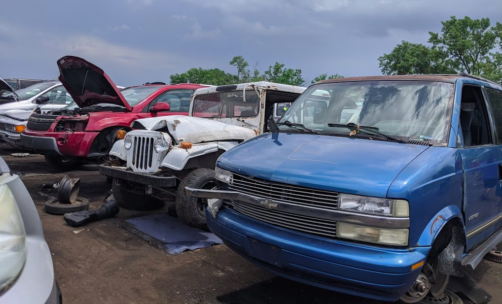 Two Jalopnik readers, razorbeamteam and shop-teacher, recently discovered Project POStal's lifeless body propped up in a Chicago-area junkyard. A visit to the yard's website shows that the Jeep is sitting in row 10, just next to a blue Chevy Astro: