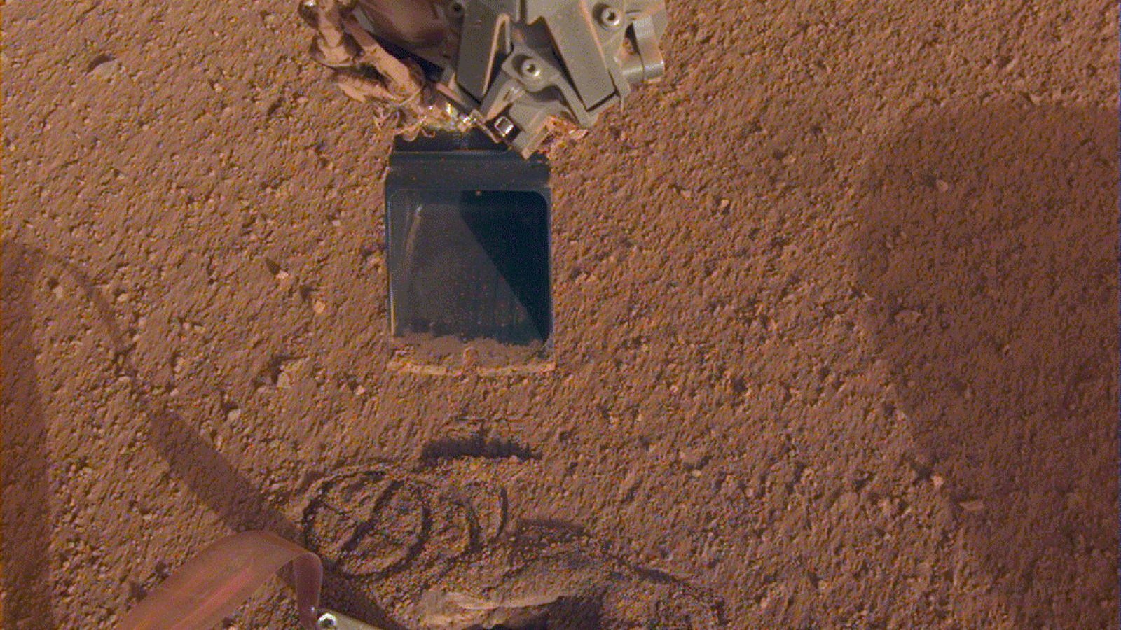 In late February, the team moved on to what Spohn calls "plan C." They positioned the scoop above the mole's tail and pushed it straight down into the dirt. The move is risky, because a delicate tether that provides power and communications from the lander attaches to the back part of the mole, and a hard whack could damage it. "This is our last resort," Spohn said in an interview last fall.