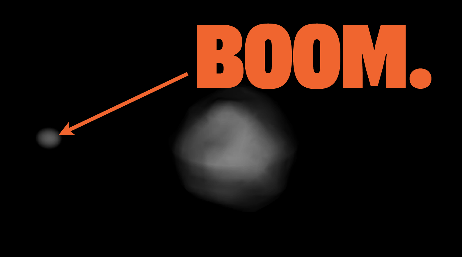 Also, like any good, modern fight, there will be a witness getting the whole thing on video, in this case a small Cubesat that will be released prior to impact and may or may not upload the footage to Worldstar.
