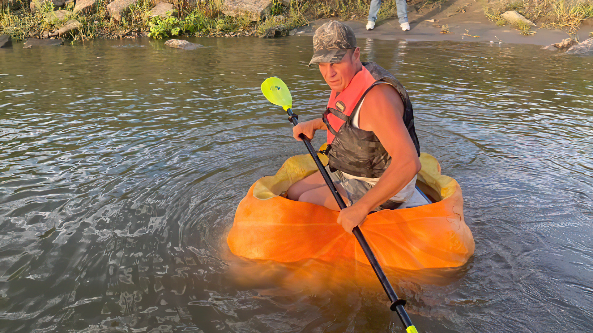 Nebraska Man Squashes Record With 38 Mile Paddle In A Pumpkin