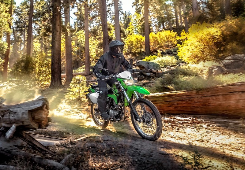 The Kawasaki KLX 230 is another "baby" dual-sport bike but has a bigger 233cc single-cylinder engine than the Honda XR150L. That may not be saying much as far as displacement, but the bike is a dual-sport through and through complete with a 21-inch front wheel and 18-inch rear to roll over obstacles, and 8.7 inches of ground clearance at the front fork. The saddle is nearly 35 inches tall, but Kawasaki sells a shorter version that comes in at 32.7 inches.