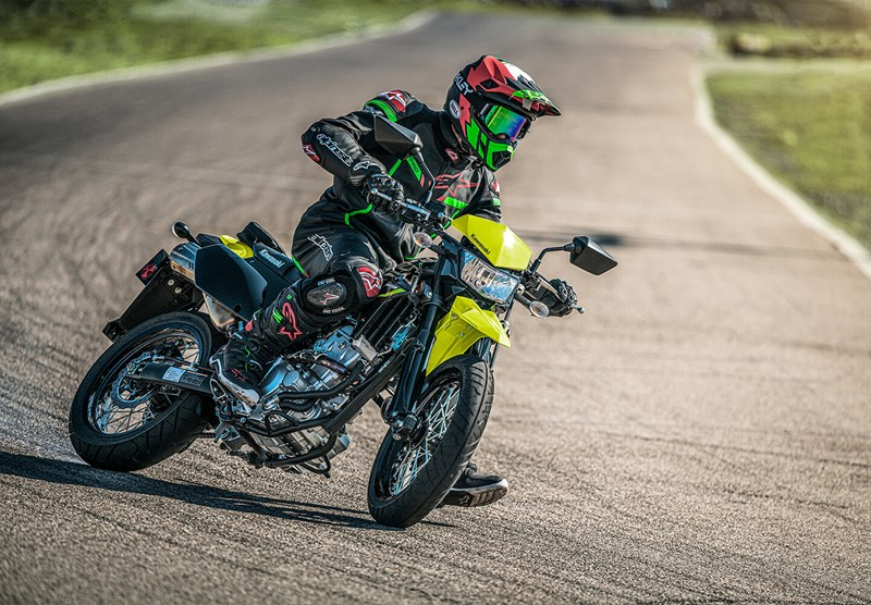 If a small-displacement dual-sport bike isn't your speed, there's always the KLX 230SM, which is a supermoto bike. I wouldn't normally call supermotos beginner bikes because they tend to be rowdy and make lots of torque early in the powerband. They are raucous and playful machines that demand a bit of respect from their rider, but the 233cc single-cylinder engine of the KLX230 lends itself to beginners more so than other supermotos.