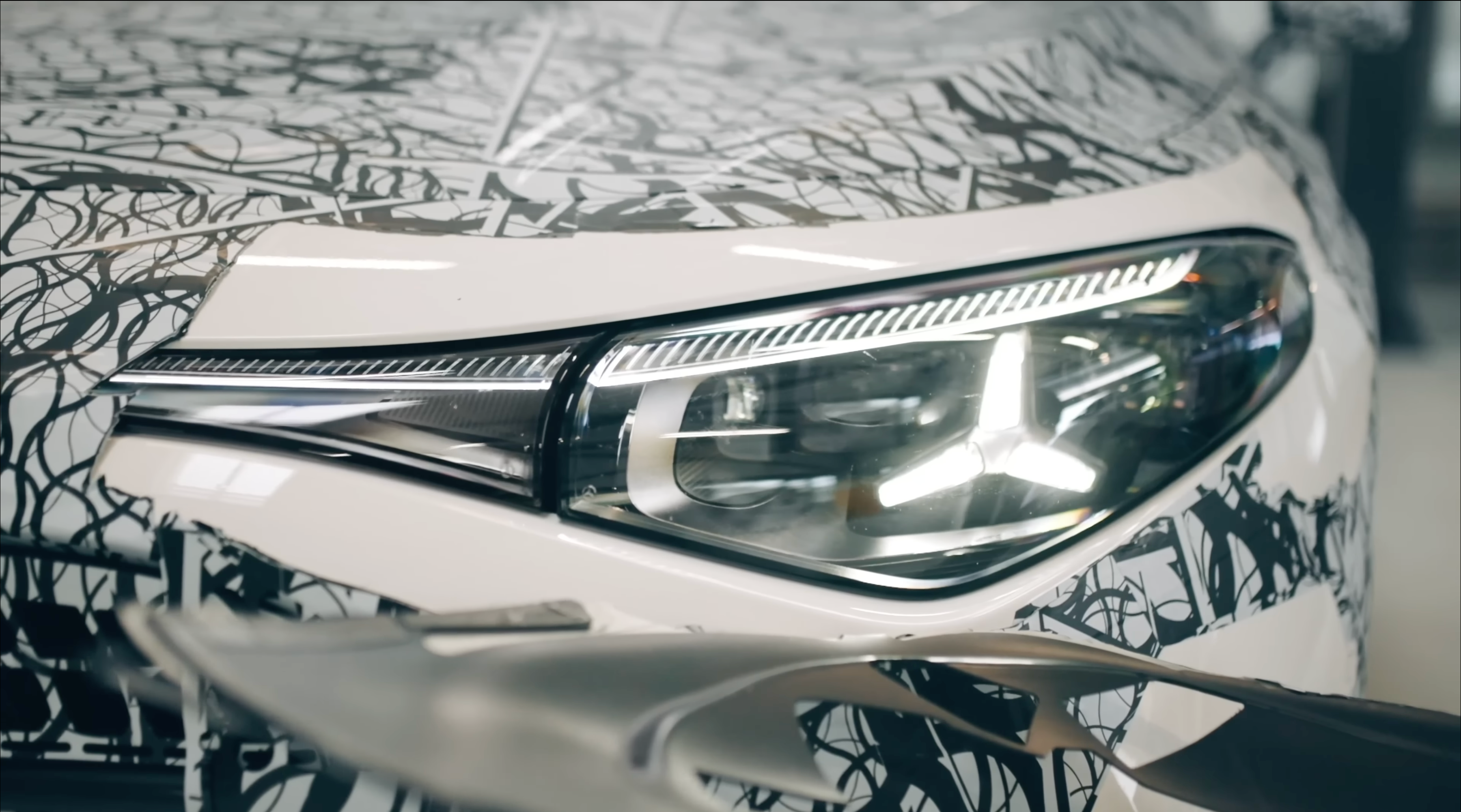 When the Concept CLA debuted last September, everyone said there would be no way its three-pointed star headlights and taillights would make it to production. Ha! Ye of little faith. As the video's host Sarah Harman reveals when she takes off a piece of camouflage, the CLA's headlights have a prominent LED cluster shaped like Mercedes' logo. While you can't really tell from the photos and video, the taillights will too, and the star lights won't just be reserved for the electric version of the CLA.