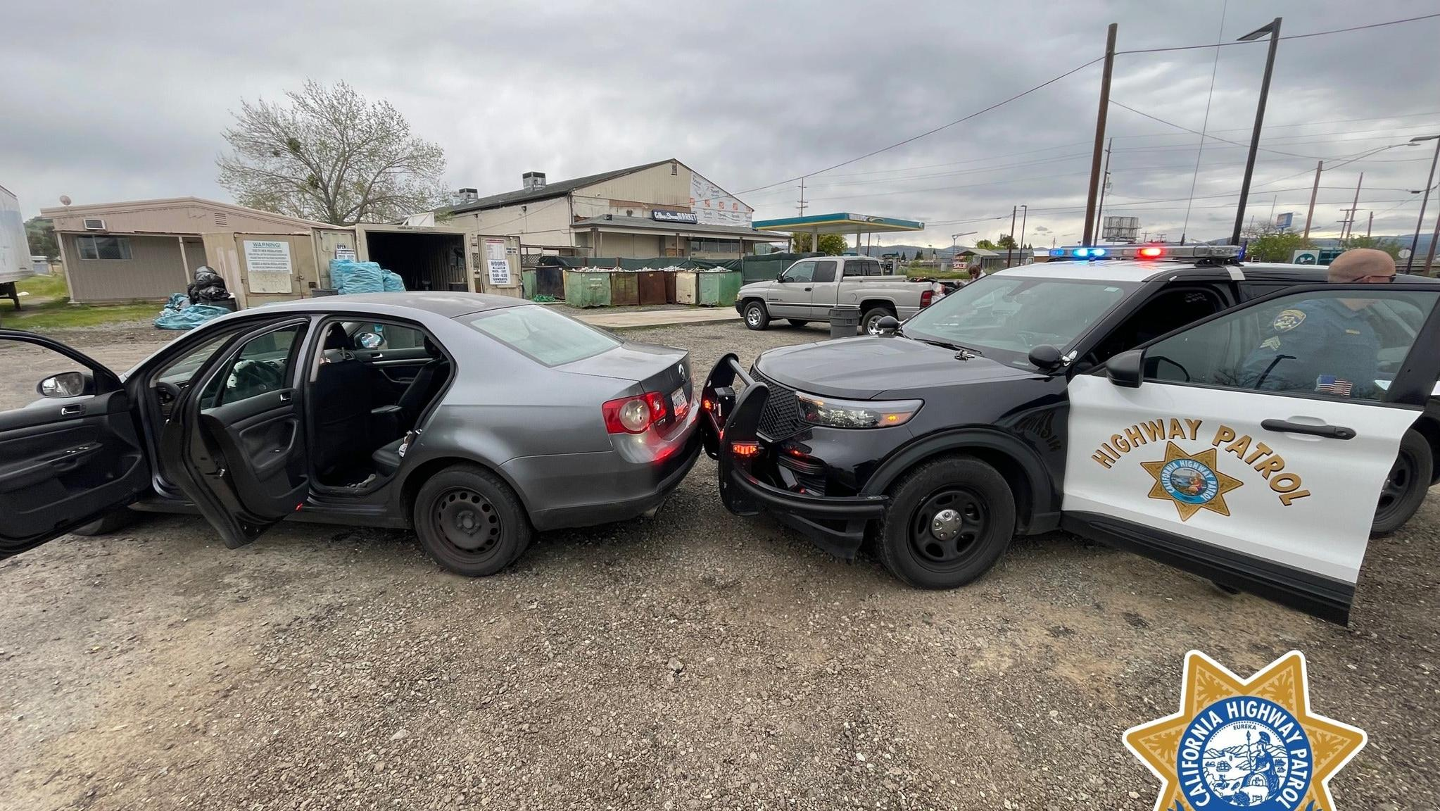 CHP officer in Oroville, California posted a rundown of the whole ordeal on Facebook. They said that at around 9:20 a.m. an officer saw a gray VW sedan that "stopped oddly in the middle of an intersection." When cops told them to move, the car sped off, leading to a "short and erratic chase" that eventually ended in a dirt parking lot east of the elementary school the kid was trying to get to. Then, the 9-year-old threw the Jetta in reverse and crashed into the cop's Ford Explorer patrol car, damaging both vehicles.