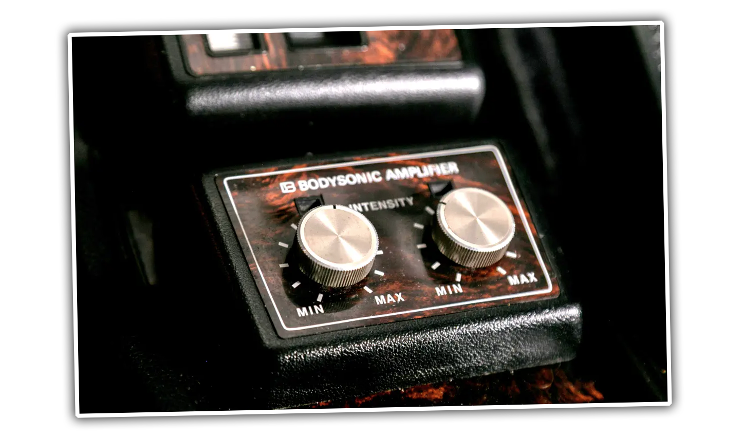 The system even came with its own special set of controls, a pair of MIN to MAX knobs just labeled INTENSITY. I suppose one was for your butt, one for your back? Oh, wait, no, one for each seat! Ah, yeah, that makes sense!