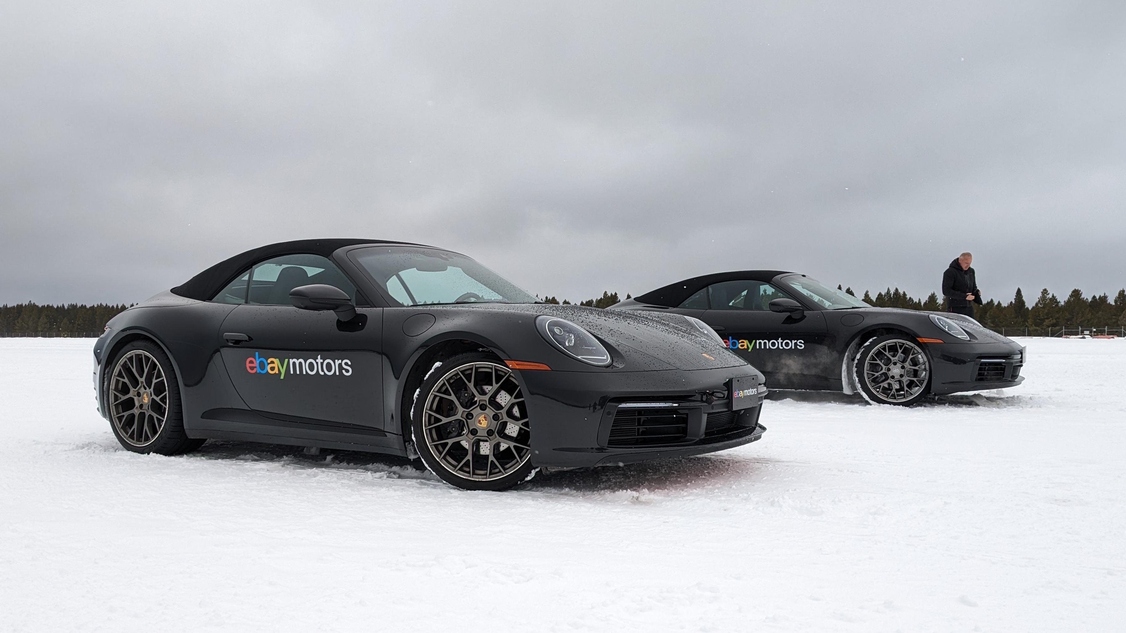After the ice course, we headed out to one of the most enjoyable events of the day, a slalom course featuring a pair of Porsche 911 Carrera Cabriolets. Why eBay Motors brought a pair of convertibles to Montana for winter testing, I have no idea, but I'm never going to complain about being handed the keys to any 911 ever. Unless we're on snow, and the 911 in question is wearing Pirelli P Zero PZ4s. I did manage to get moving, but I also got stuck after maybe 10 feet. On those tires, it was literally useless.