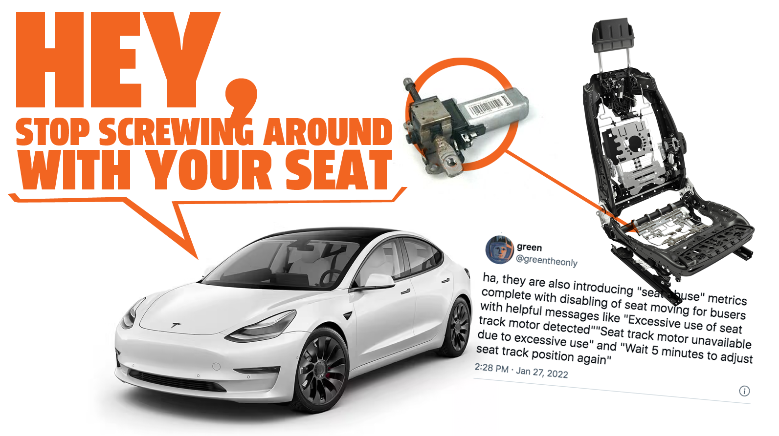 We've reported on the findings of Tesla hacker/researcher GreenTheOnly before, and it seems that a new interesting detail has been discovered, found in relation to information about a new front seat vendor for Tesla Model 3 and Model Y cars. The cars appear to track metrics and data about how often the seat is adjusted, and "excessive use" can result in users being locked out of adjusting the seat. This sounds, um, annoying.