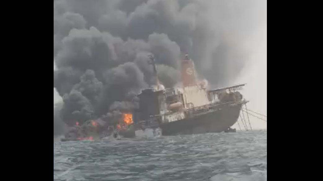 Once again, the ocean is on fire. This time, rather than an underwater oil spill, the cause is right on the surface: An oil production ship off the coast of Nigeria has exploded, sending fire and black smoke off of its hull.