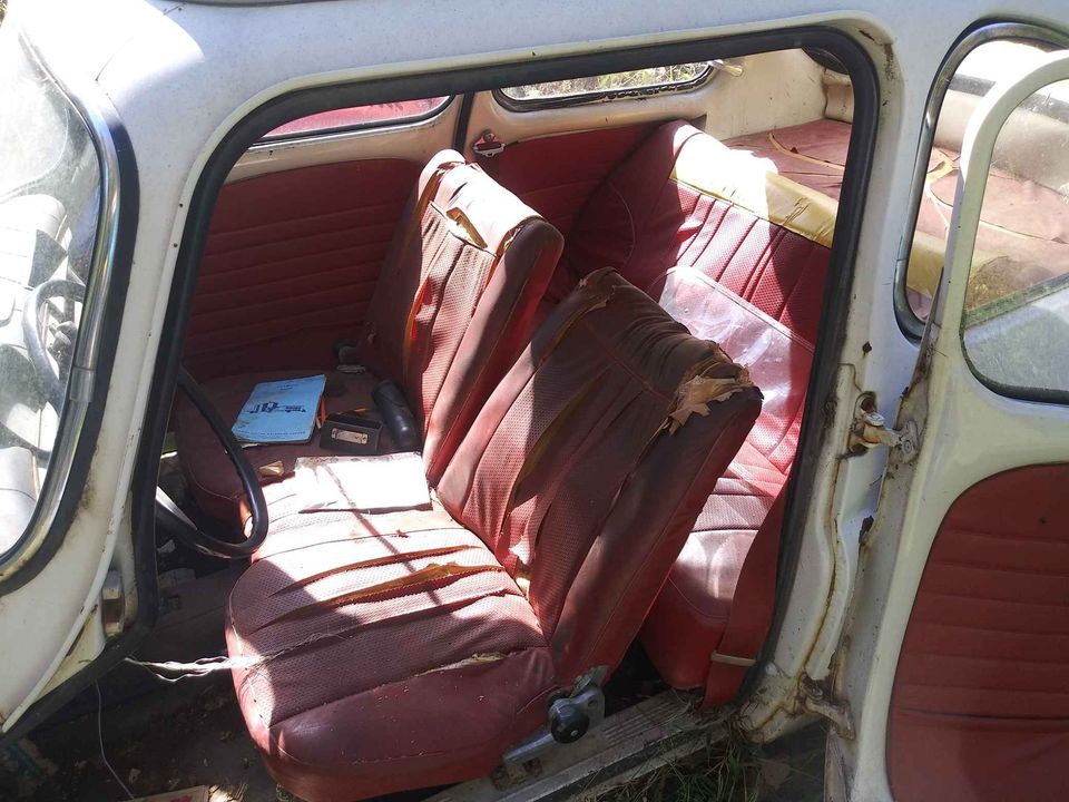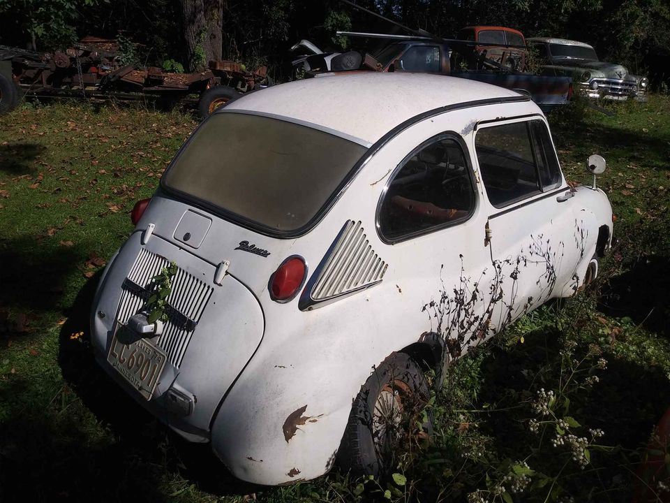 The body has a bit of rust, but it looks workable (though the undercarriage is a big mystery). The interior looks to be all there. And the powertrain is apparently complete, though the motor is seized. But who knows, maybe a bit of Marvel Mystery Oil will take care of that? Probably not, but I bet you could source some new engine jugs and pistons for dirt cheap. After all, that 356cc engine found its way into quite a few vehicles.