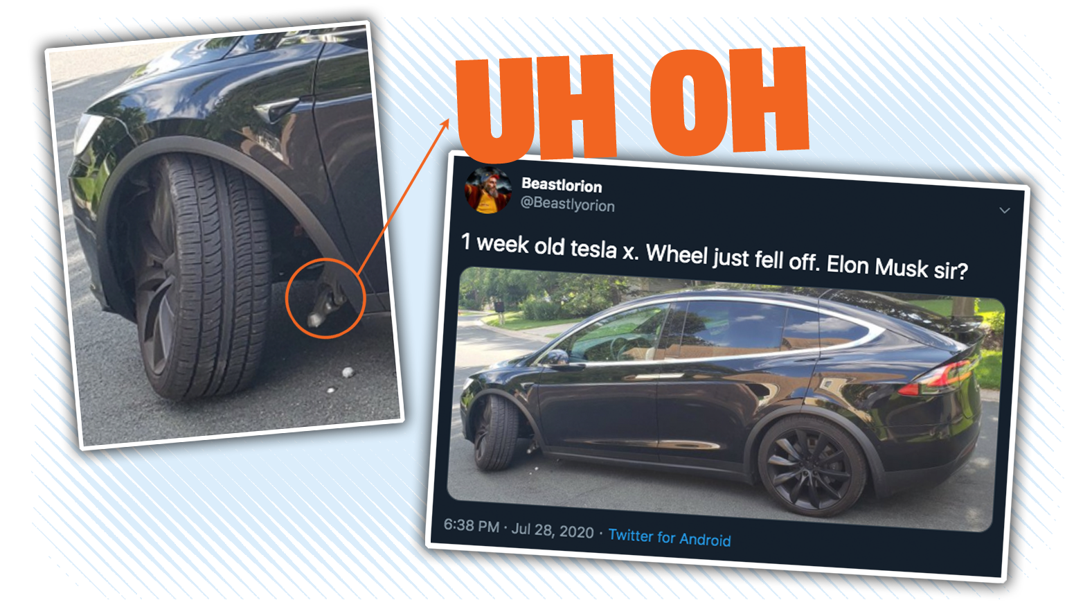 There's no question that Tesla absolutely revolutionized electric cars and that they have some really elegant engineering and careful design for their cars. There's also no question that they have some real quality control problems and their CEO kinda, you know, sucks. I guess the CEO part isn't really germane here, other than, unlike every other car company, when something goes wrong, unsatisfied customers tweet to Elon directly. Like this one did, because his brand-new car just suffered a huge suspension failure.